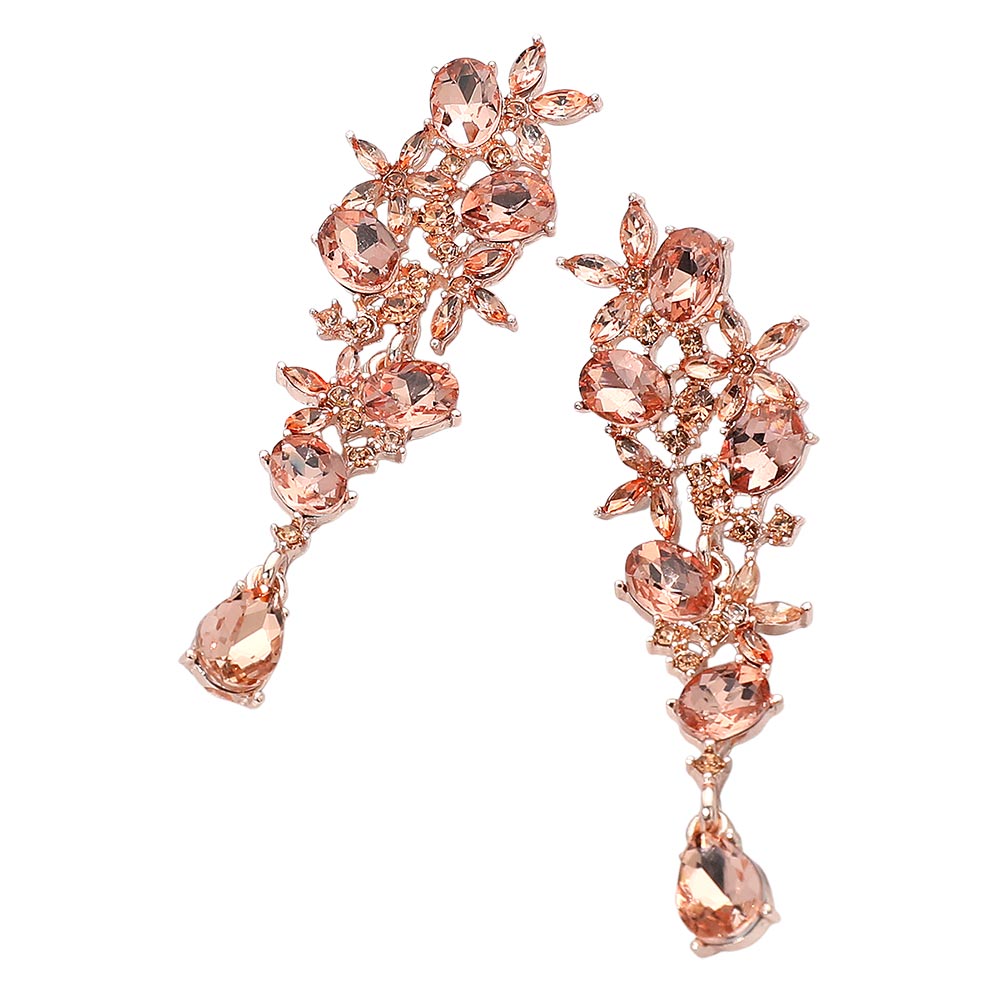 Floral Stone Teardrop Cluster Drop Evening Earrings