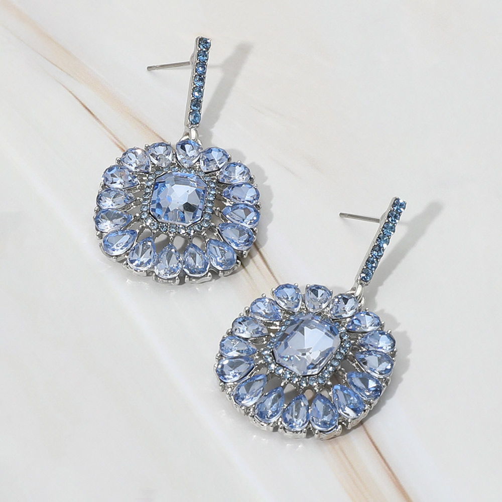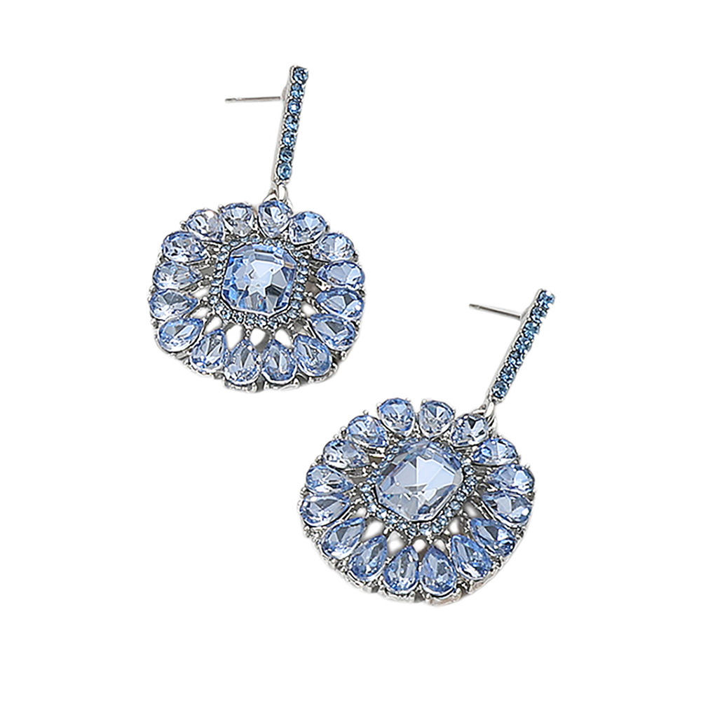 Details • Size : 1" X 1.8" • Post Back • Make a statement with round crystal drop earrings featuring intricate gemstone detailing. Perfect for parties, weddings, or adding glamour to any evening outfit. Lightweight and eye-catching design. • Lead and Nickel Compliant
