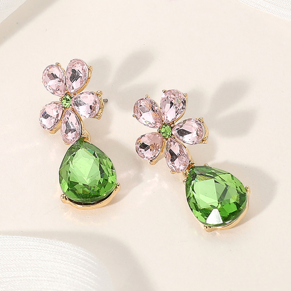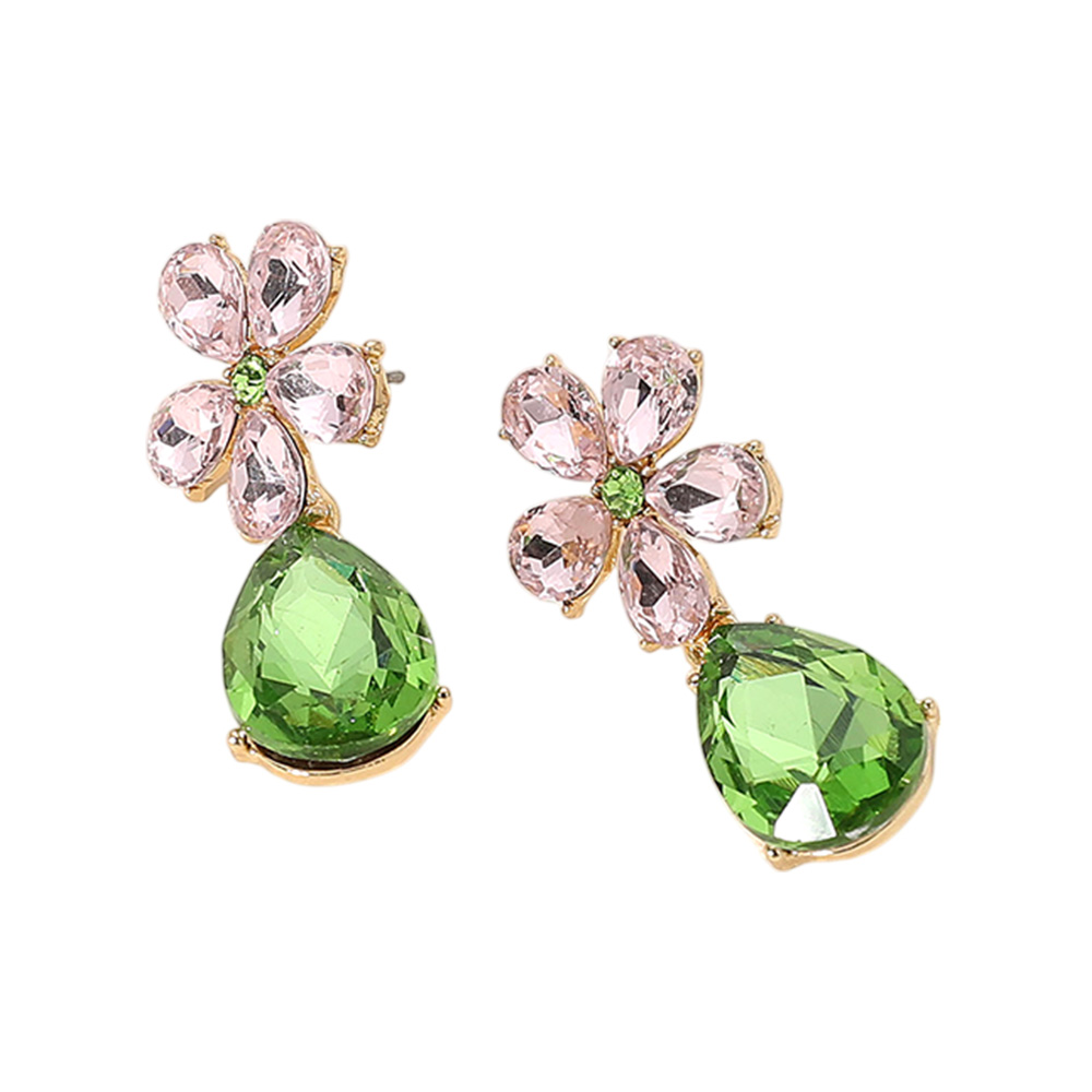 Flower Teardrop Stone Cluster Dangle Evening Earrings