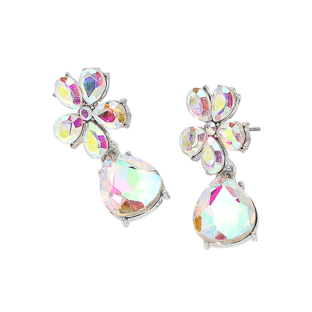 Flower Teardrop Stone Cluster Dangle Evening Earrings