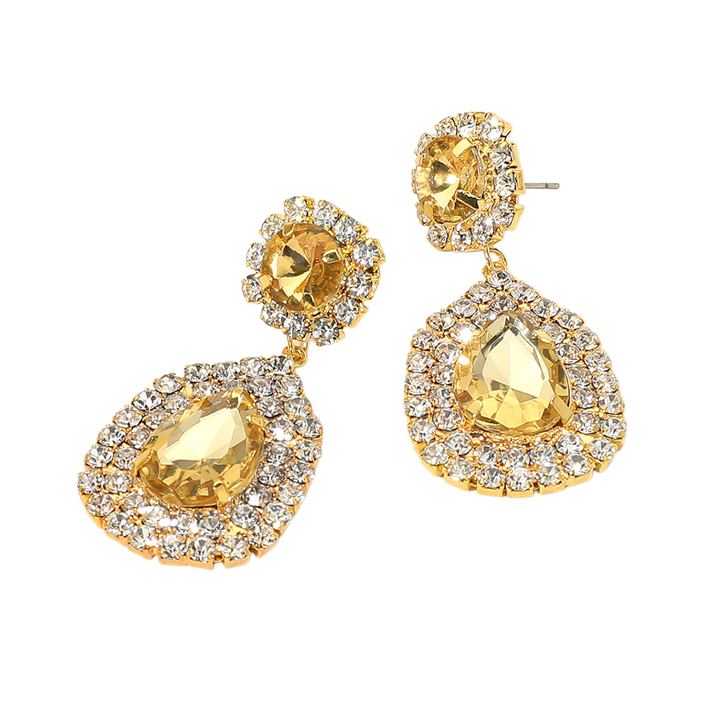 • Elegant teardrop statement earrings featuring a brilliant halo of crystals and a shimmering centerpiece. Perfect for weddings, formal events, or glamorous nights out, these earrings add radiant sparkle and sophistication to any outfit while ensuring timeless appeal.