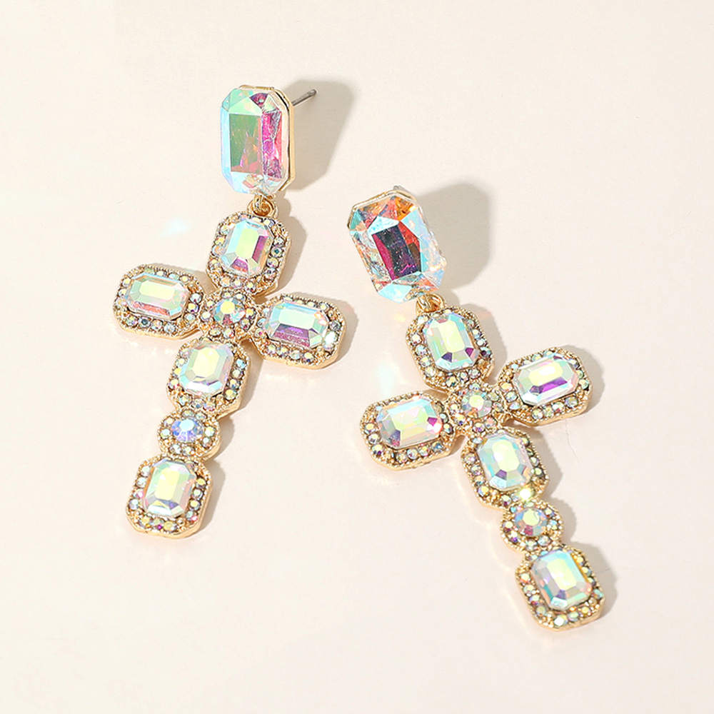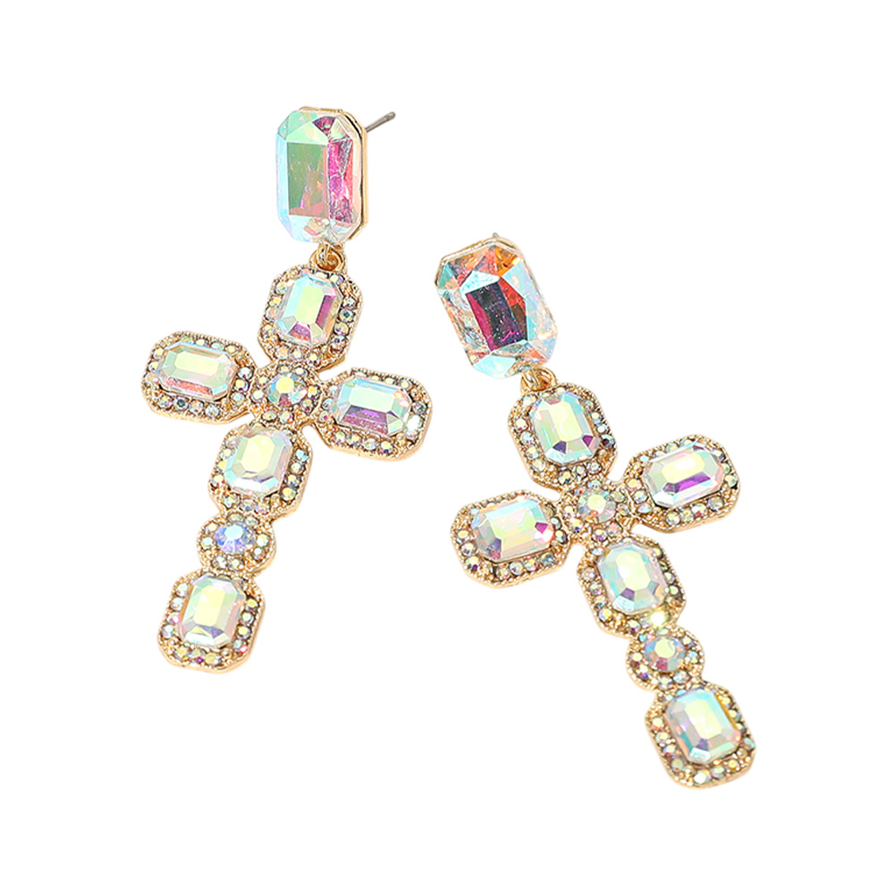 Glass Stone Cluster Cross Dangle Evening Earrings