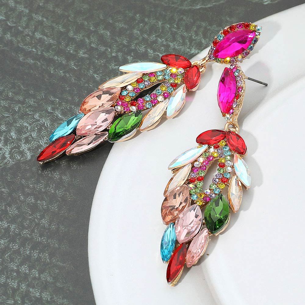 Marquise Stone Cluster Embellished Dangle Evening Earrings