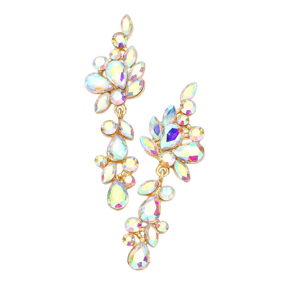 Multi Stone Cluster Vine Dangle Evening Earrings Multi Stone Cluster Vine Dangle Evening Earrings