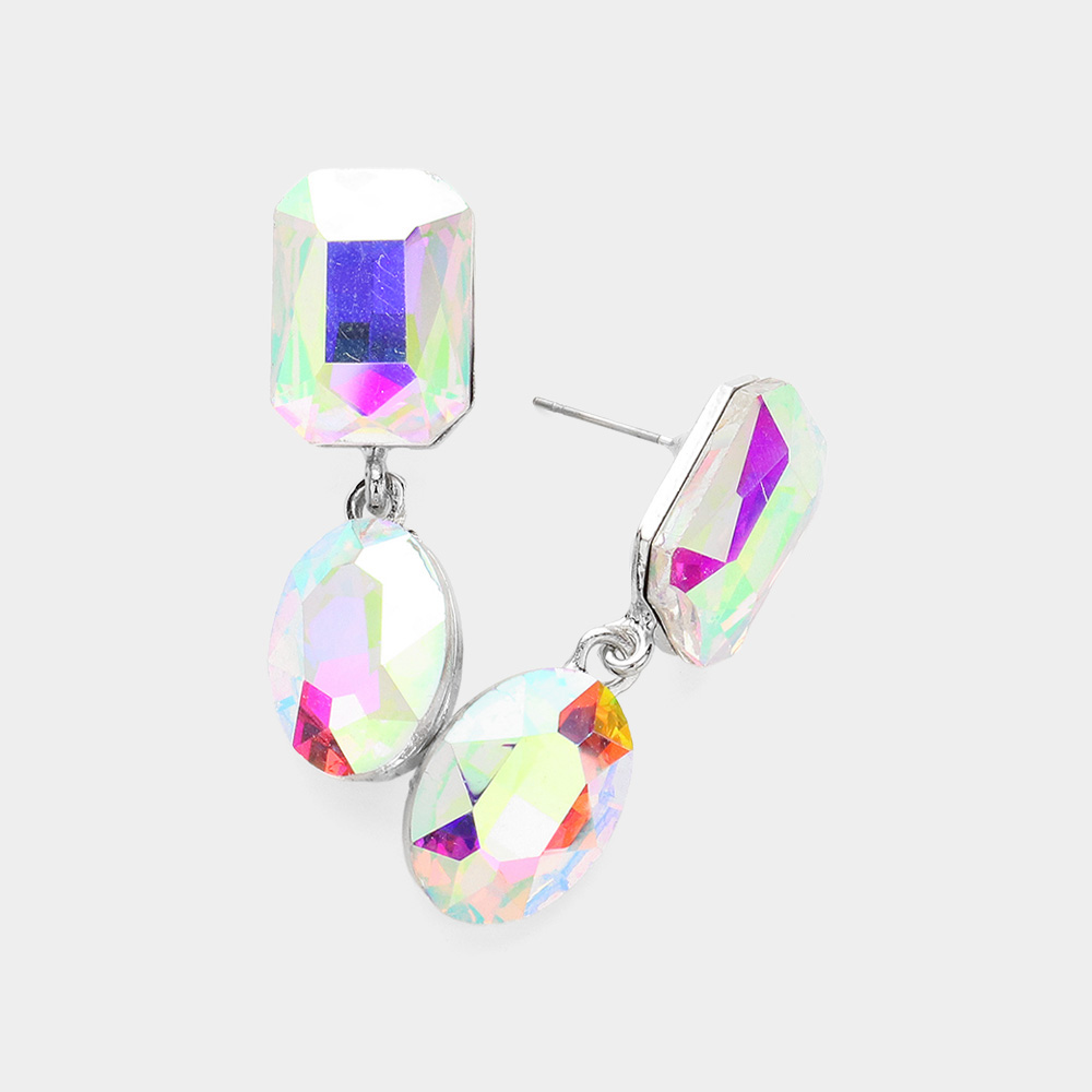 Oval Glass Stone Cluster Dangle Evening Earrings