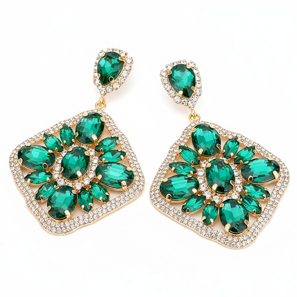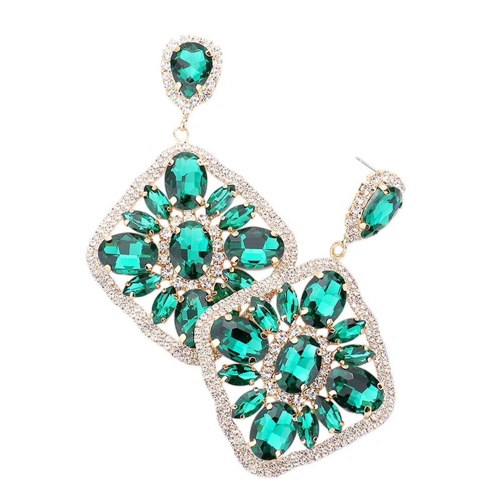 Rectangle Marquise Teardrop Stone Cluster Dangle Evening Earrings