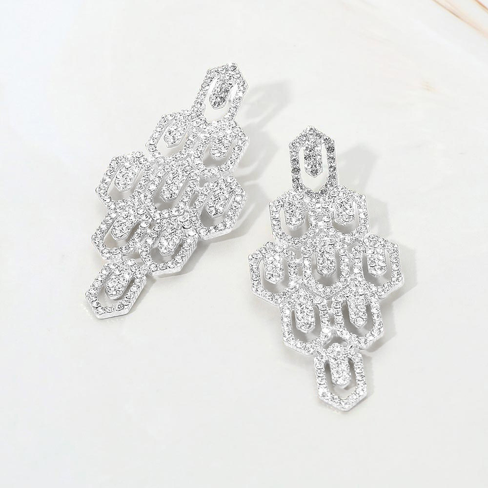 Rhinestone Pave Hexagon Link Statement Evening Earrings