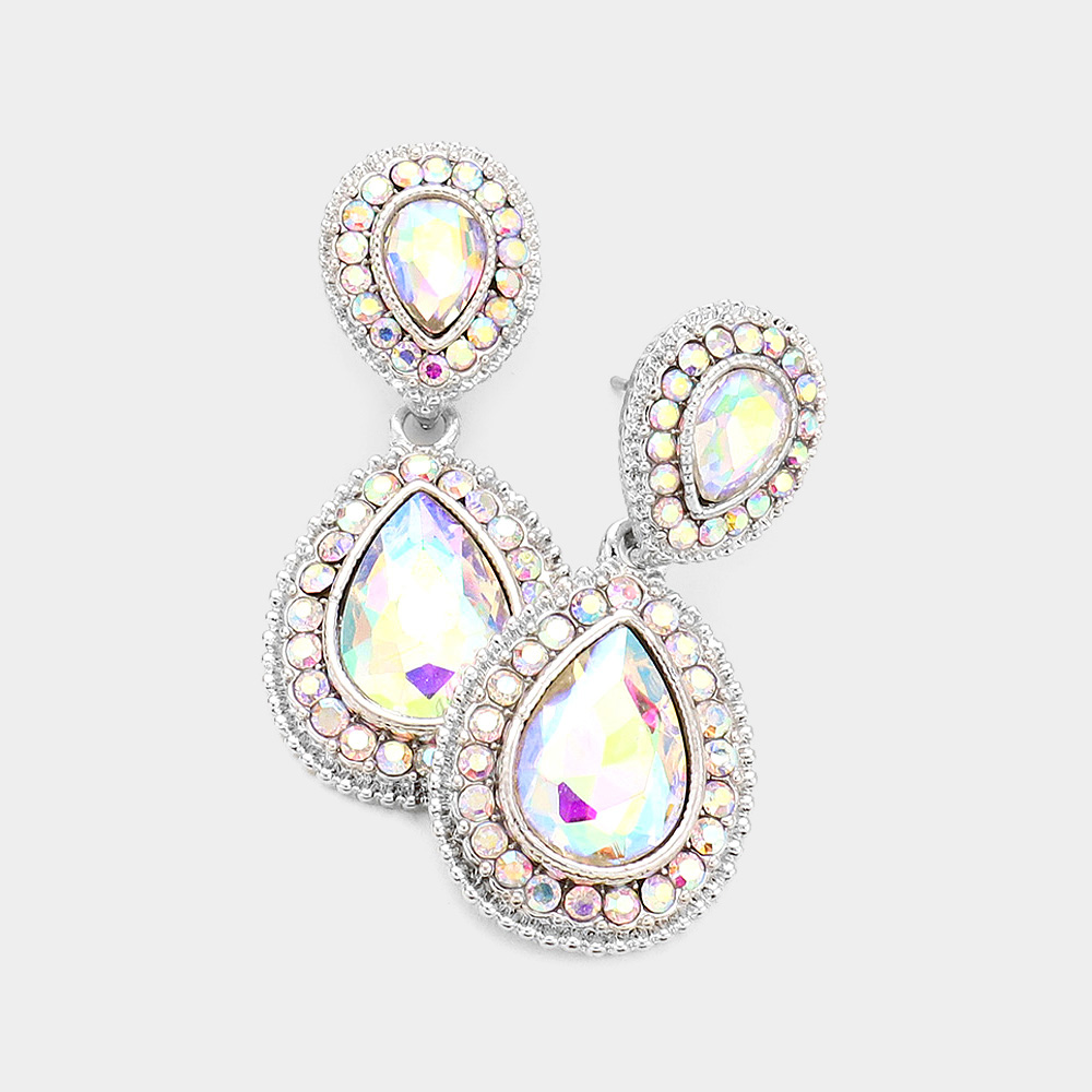 Cushion Rectangular Stone Cluster Link Evening Necklace