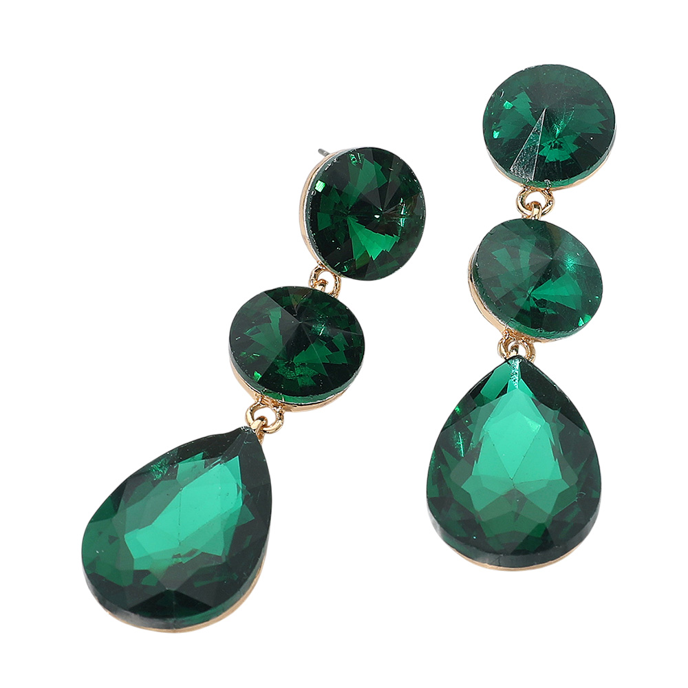 • Bold teardrop dangle earrings with faceted stones and round stud accents. Designed for a striking, glamorous touch, these earrings are ideal for evening events, weddings, or adding sparkle to any special occasion.