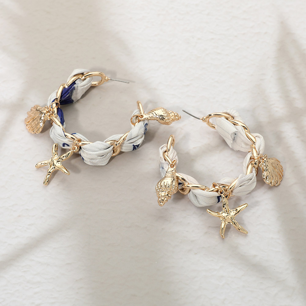 Starfish Shell Charm Fabric Scarf Hoop Earrings Starfish Shell Charm Fabric Scarf Hoop Earrings Starfish Shell Charm Fabric Scarf Hoop Earrings