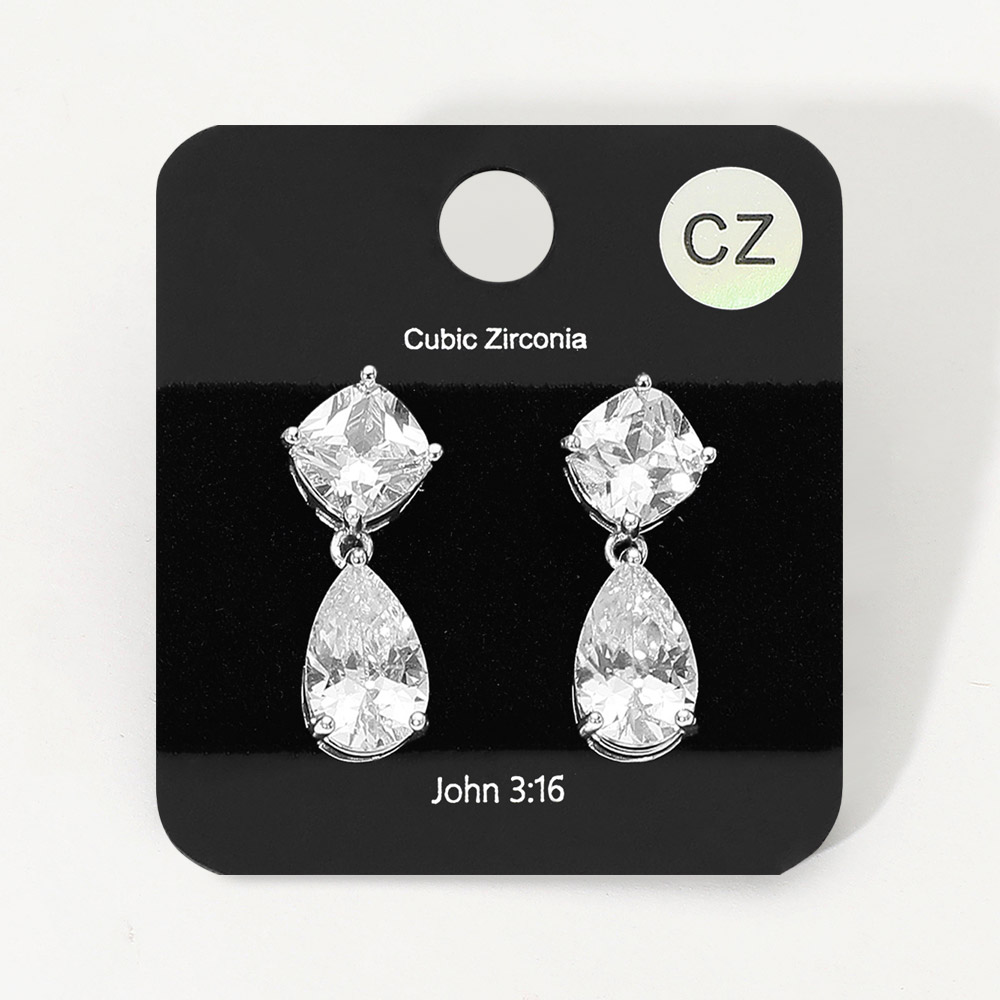 Teardrop CZ Stone Cluster Dangle Evening Earrings