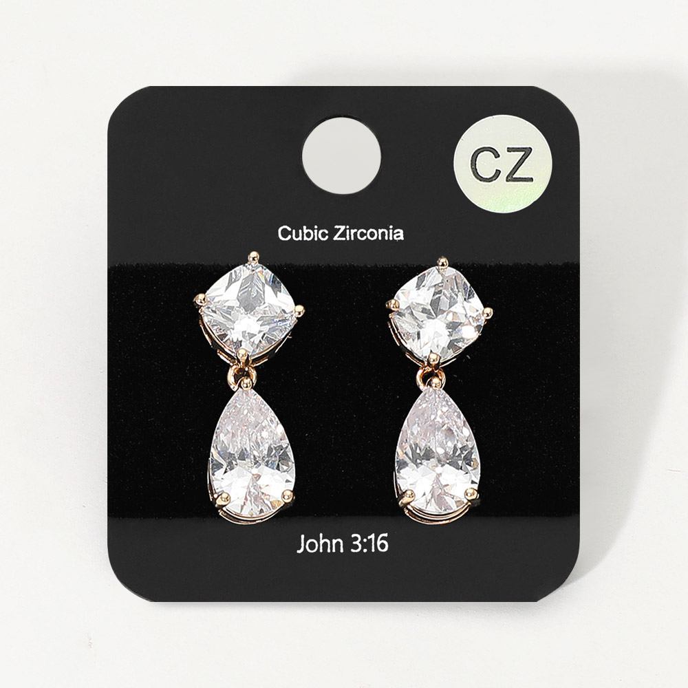 • These teardrop cubic zirconia drop earrings showcase dazzling brilliance with a radiant dual-stone design. The shimmering teardrop crystals catch the light beautifully, creating an elegant statement piece perfect for weddings, evening events, or adding sparkle to any outfit.