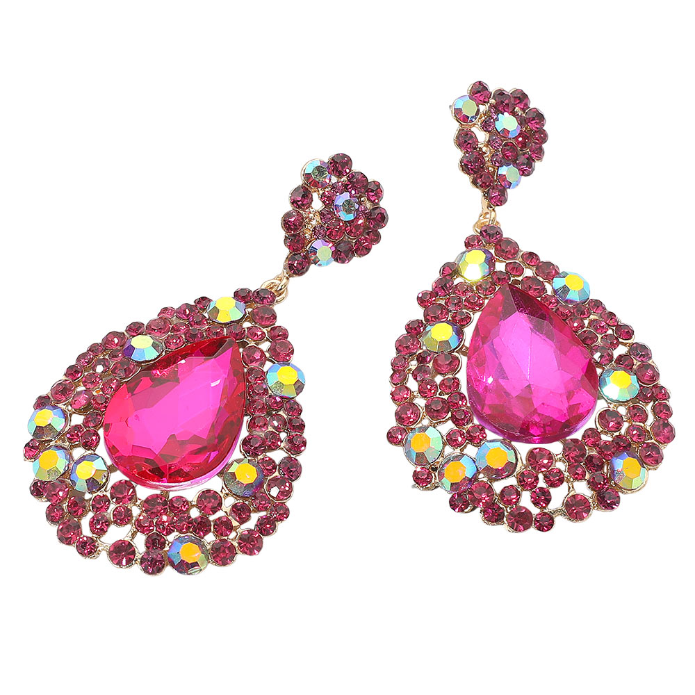 Teardrop Pointed Rhinestone Embellished Dangle Evening Earrings Teardrop Pointed Rhinestone Embellished Dangle Evening Earrings