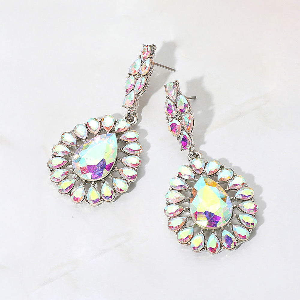 Iridescent Teardrop Crystal Dangle Earrings