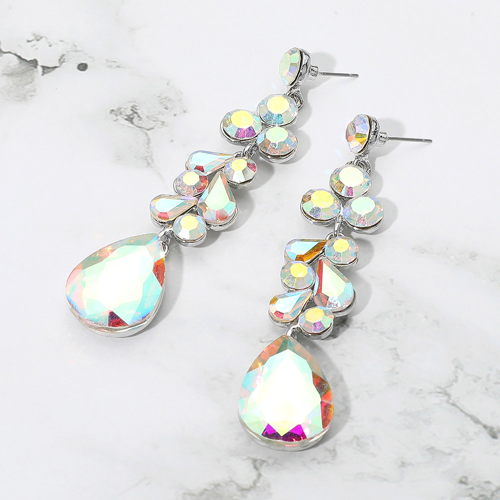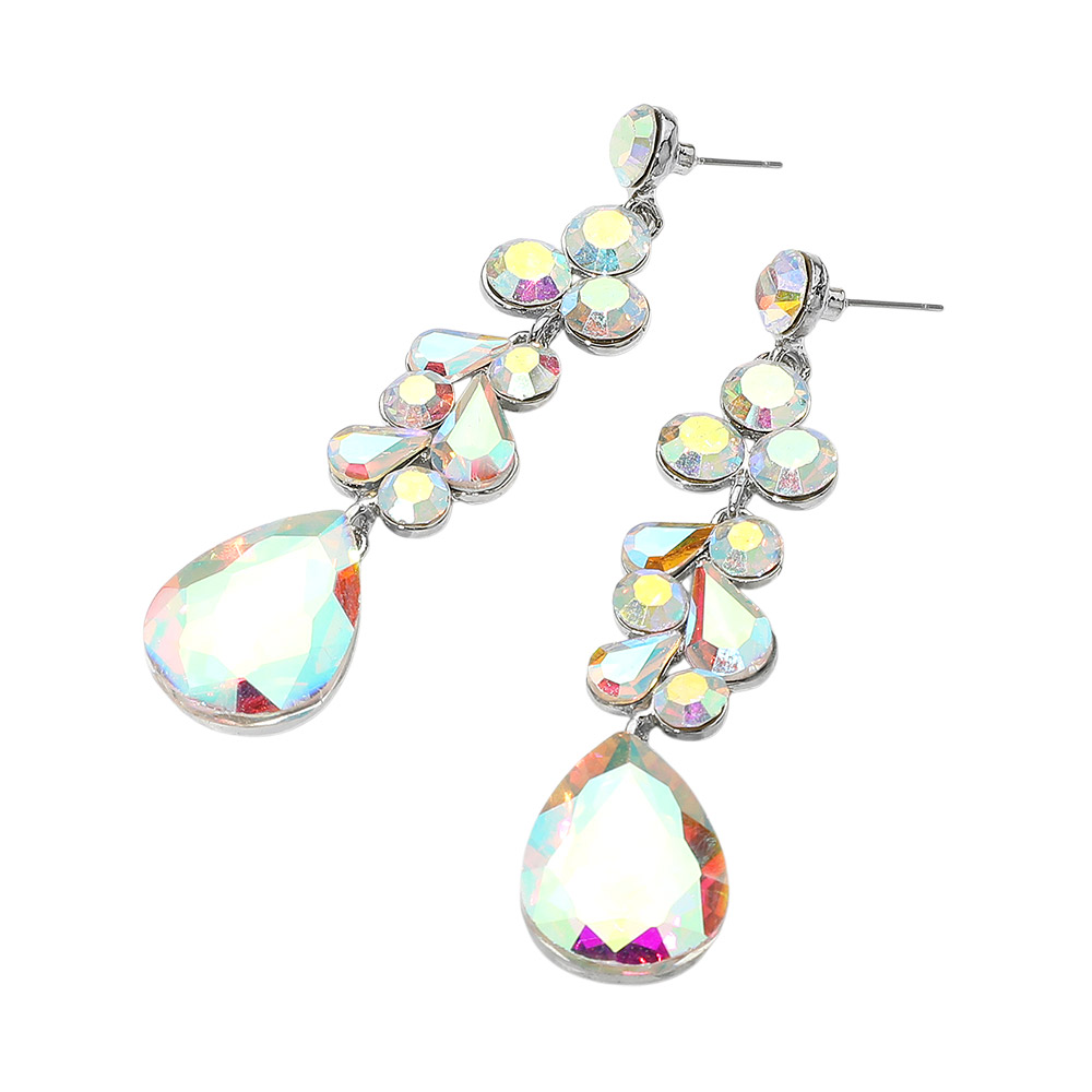 Teardrop Stone Cluster Drop Evening Earrings Teardrop Stone Cluster Drop Evening Earrings