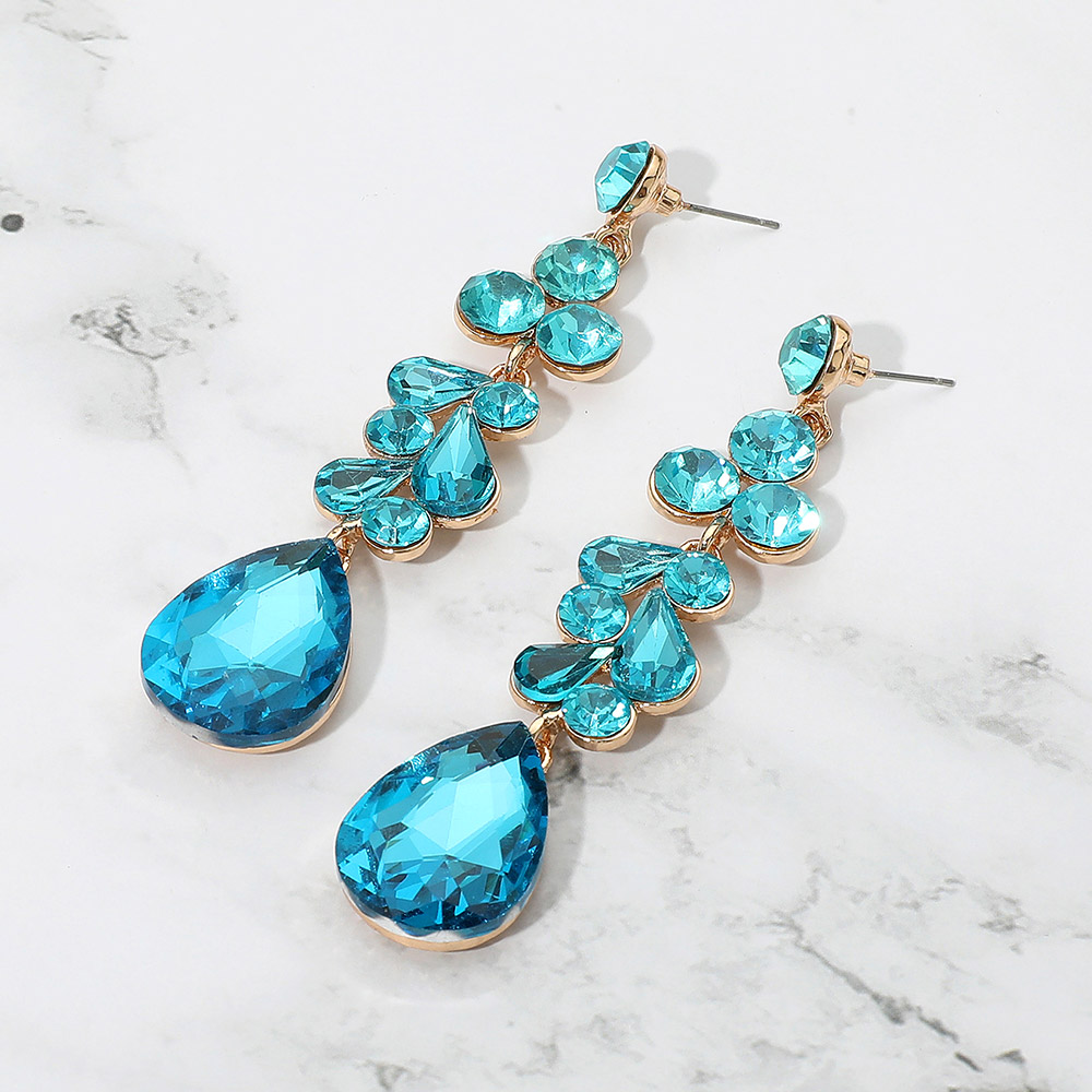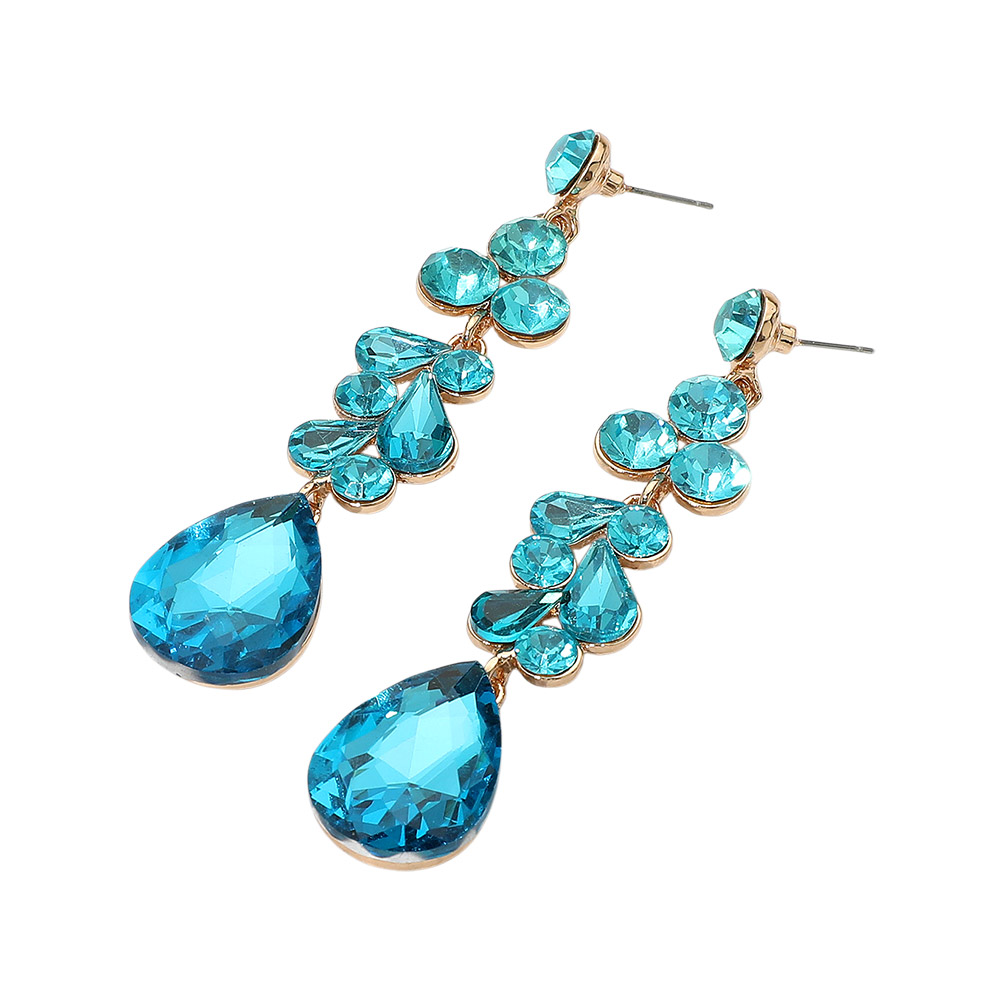 Details • Size : 0.7" X 3.4" • Post Back • Elegant dangle earrings featuring a mix of teardrop and round stones in a cascading design. These statement earrings offer shimmering accents and graceful movement, ideal for enhancing formal or evening looks. • Lead and Nickel Compliant