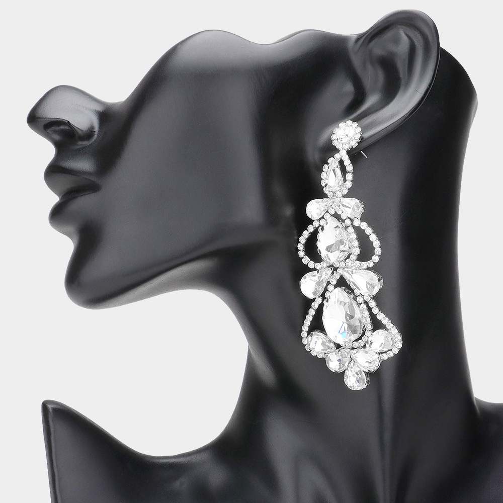 Teardrop Stone Cluster Embellished Chandelier Evening Earrings