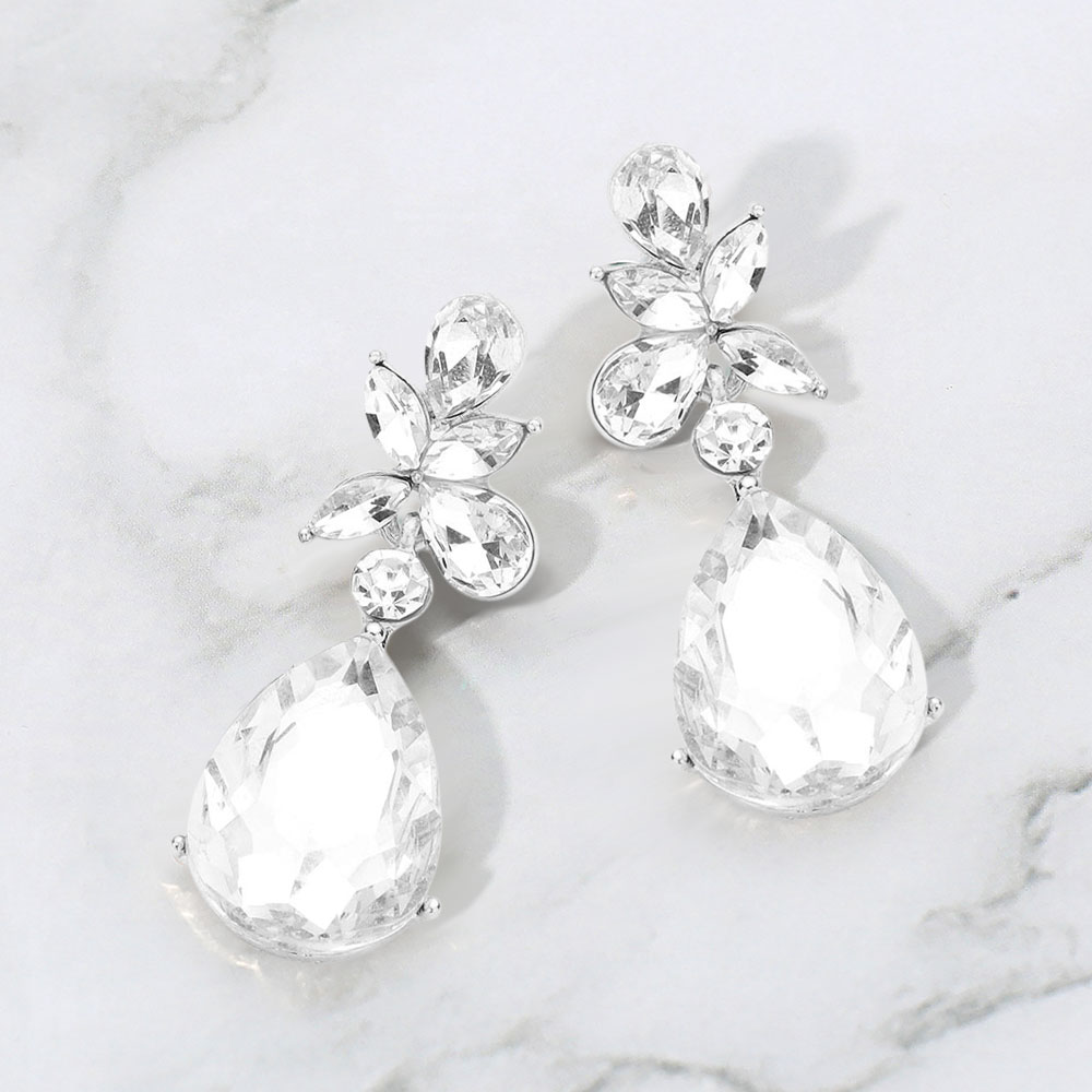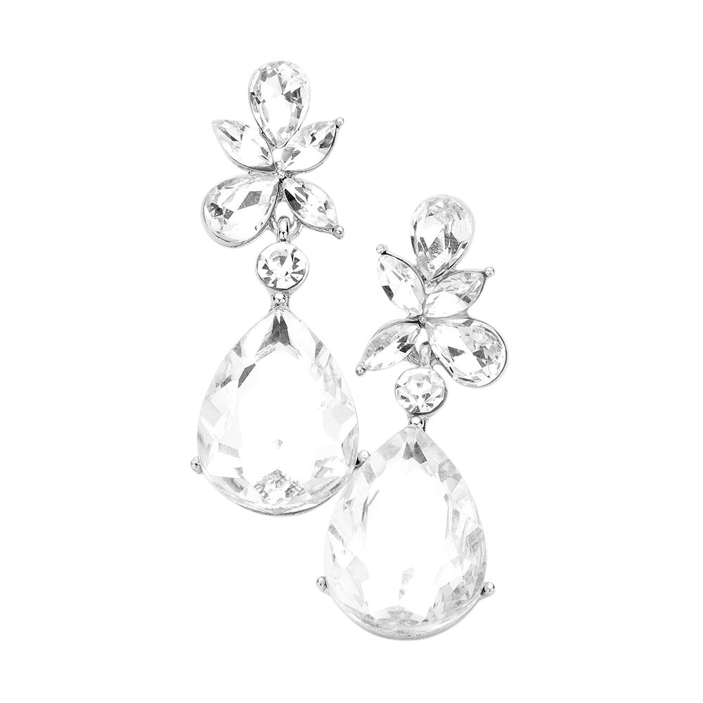 • Make a striking impression with these faceted teardrop statement earrings. Featuring bold, multi-cut stones arranged in a floral-inspired design, they capture light beautifully for a refined yet dramatic finish—perfect for evening wear or elevating any special occasion look.