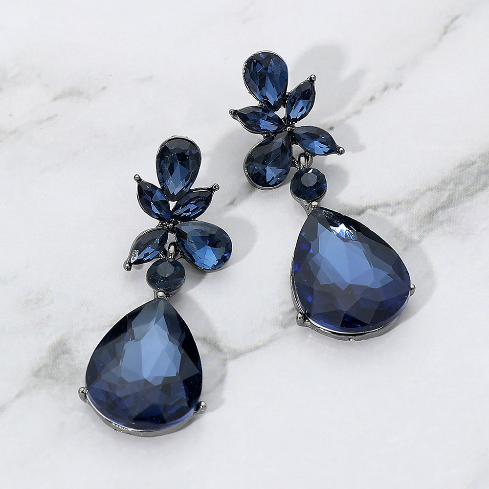 Marquise Glass Crystal Teardrop Dangle Evening Earrings