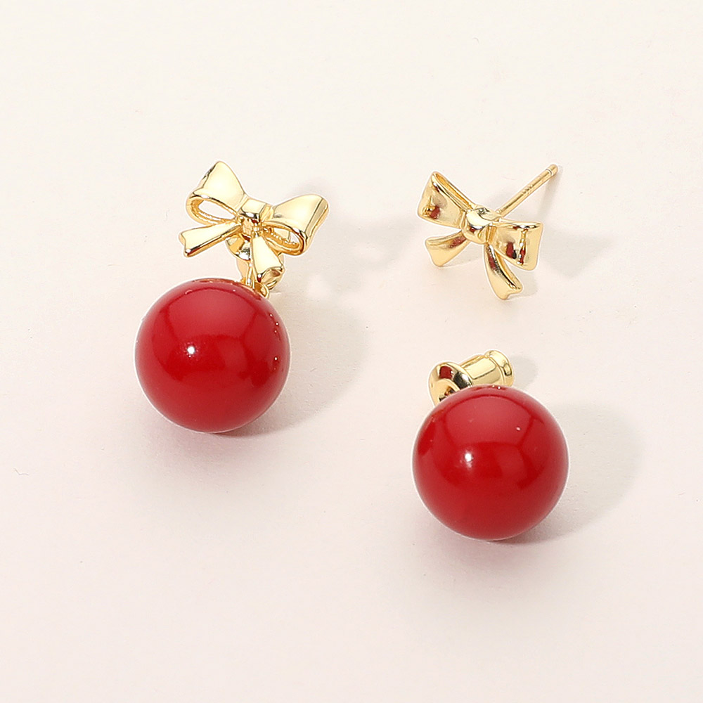 Details • Size : 0.5" X 0.8" • Post Back • Elegant bow-knot ball drop stud earrings designed with a playful yet refined silhouette. The detachable ball feature allows versatile styling, letting you wear the bow studs alone or as a full drop set. Perfect for gifting, festive outfits, everyday wear, or adding a charming accent to any look. • Gold Dipped • Hypoallergenic • Lead and Nickel Compliant • Made In Korea