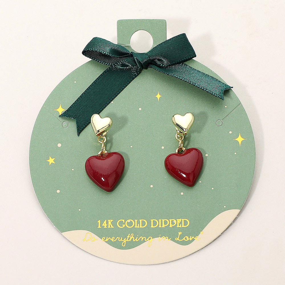 Details • Size : 0.6" X 1" • Post Back • Sweet heart drop stud earrings featuring a petite heart post with a matching dangling charm for a playful, romantic touch. The removable design allows two styling options—wear as simple studs or as full drop earrings. A charming accessory for gifting, daily wear, date nights, or special occasions. • Lead and Nickel Compliant • Hypoallergenic • Made In Korea • Gold Dipped
