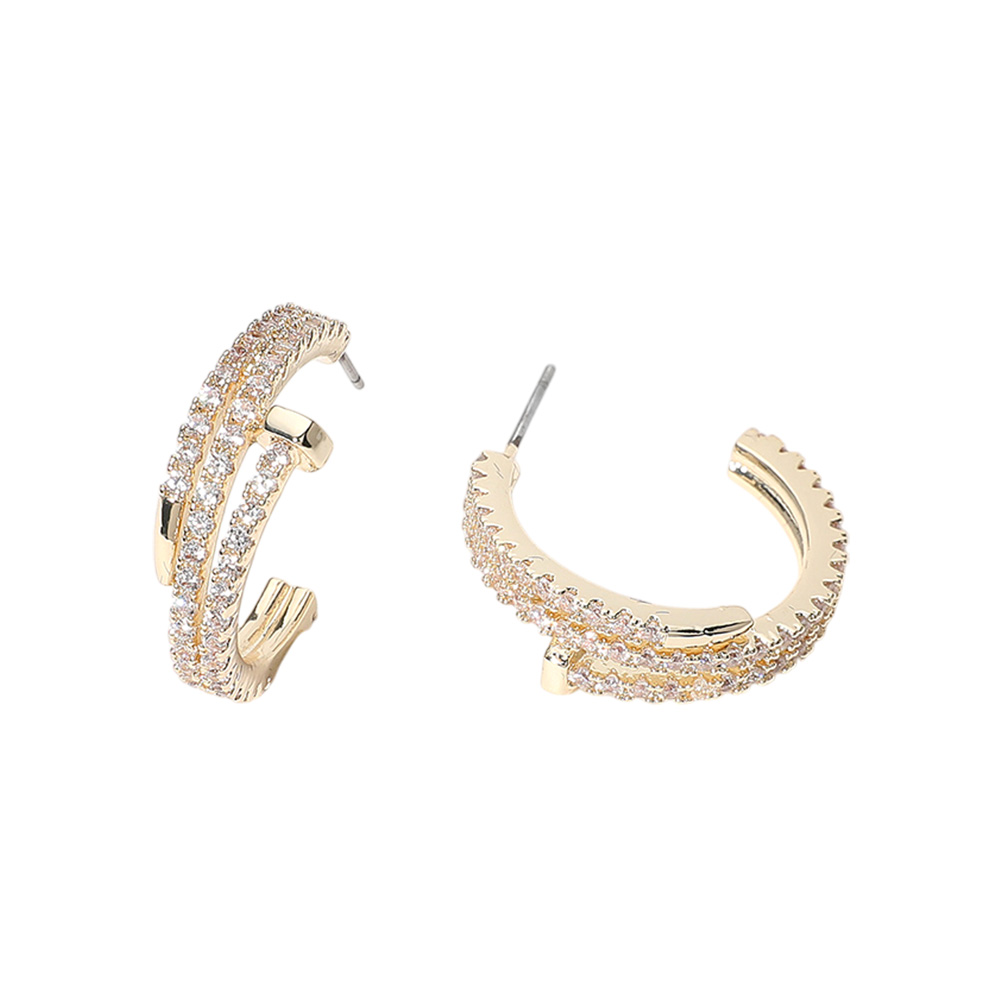 14K Gold Plated CZ Stone Paved Hoop Earrings