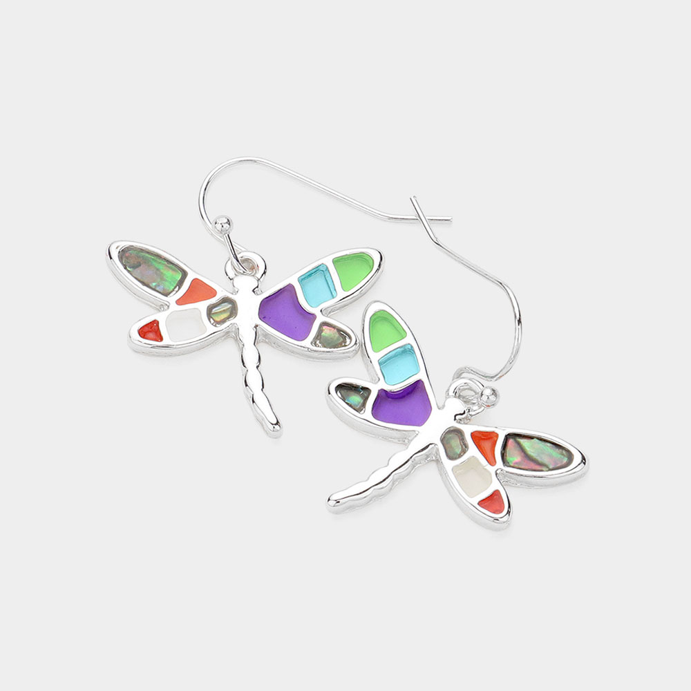 Abalone Pointed Enamel Dragonfly Dangle Earrings