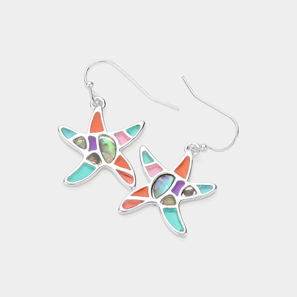 Abalone Pointed Enamel Starfish Dangle Earrings