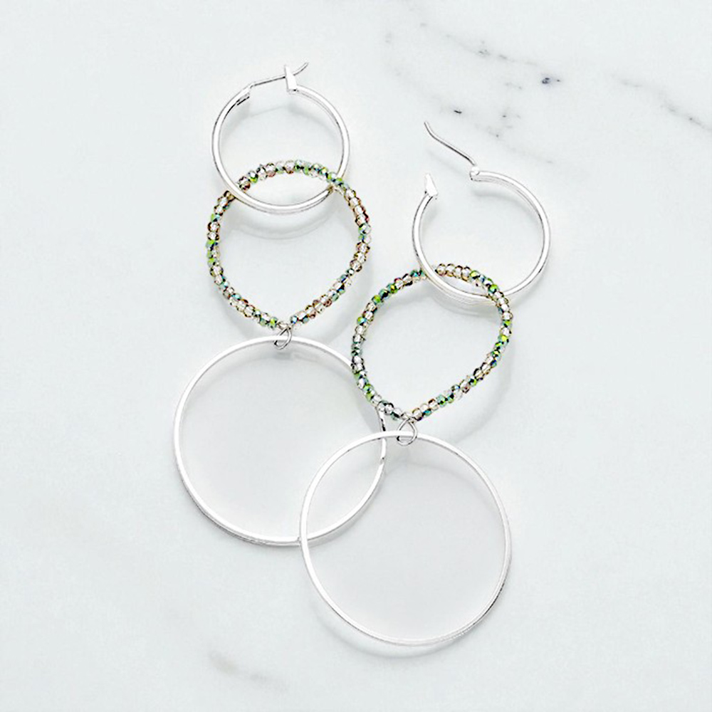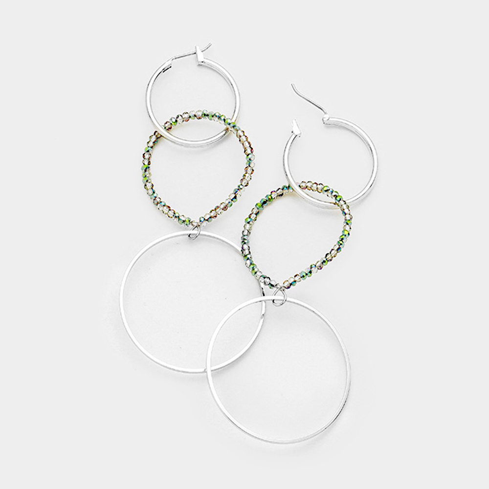 3PCS - Emerald Cut Stone Cluster Pointed Metal Ball Beaded Stretch Multi Layered Bracelets