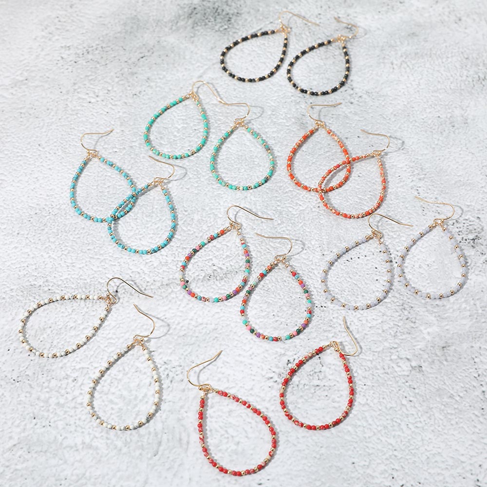 Wrapped Seed Beaded Teardrop Dangle Earrings