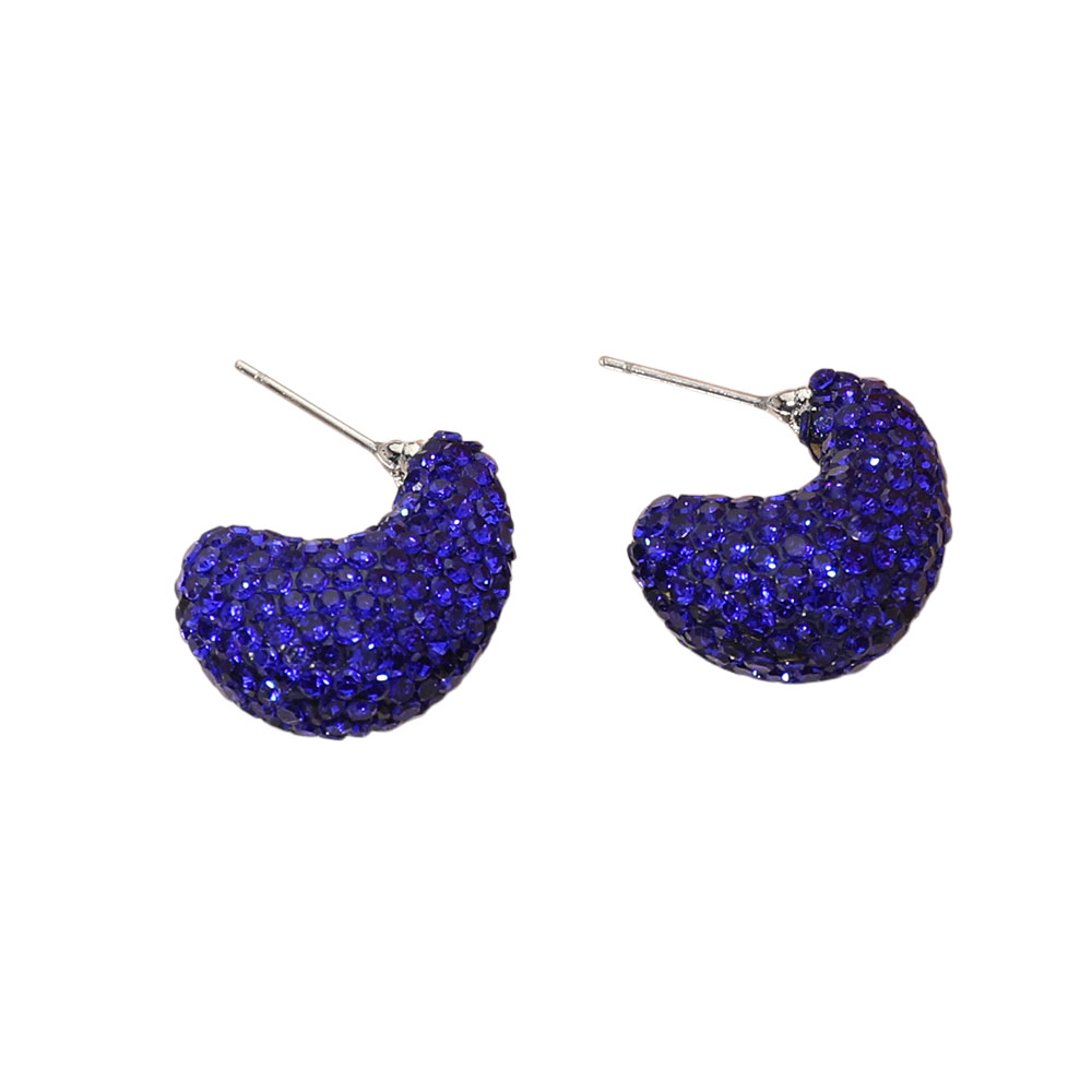 Details • Size : 0.7" X 0.9" • Post Back • Compact hoop earrings featuring dazzling rhinestone detailing for a subtle yet striking shine. Perfect for adding a touch of glamour to casual or formal looks. Lightweight and comfortable, these small hoops bring elegance and sophistication to any jewelry collection or outfit. • Lead and Nickel Compliant