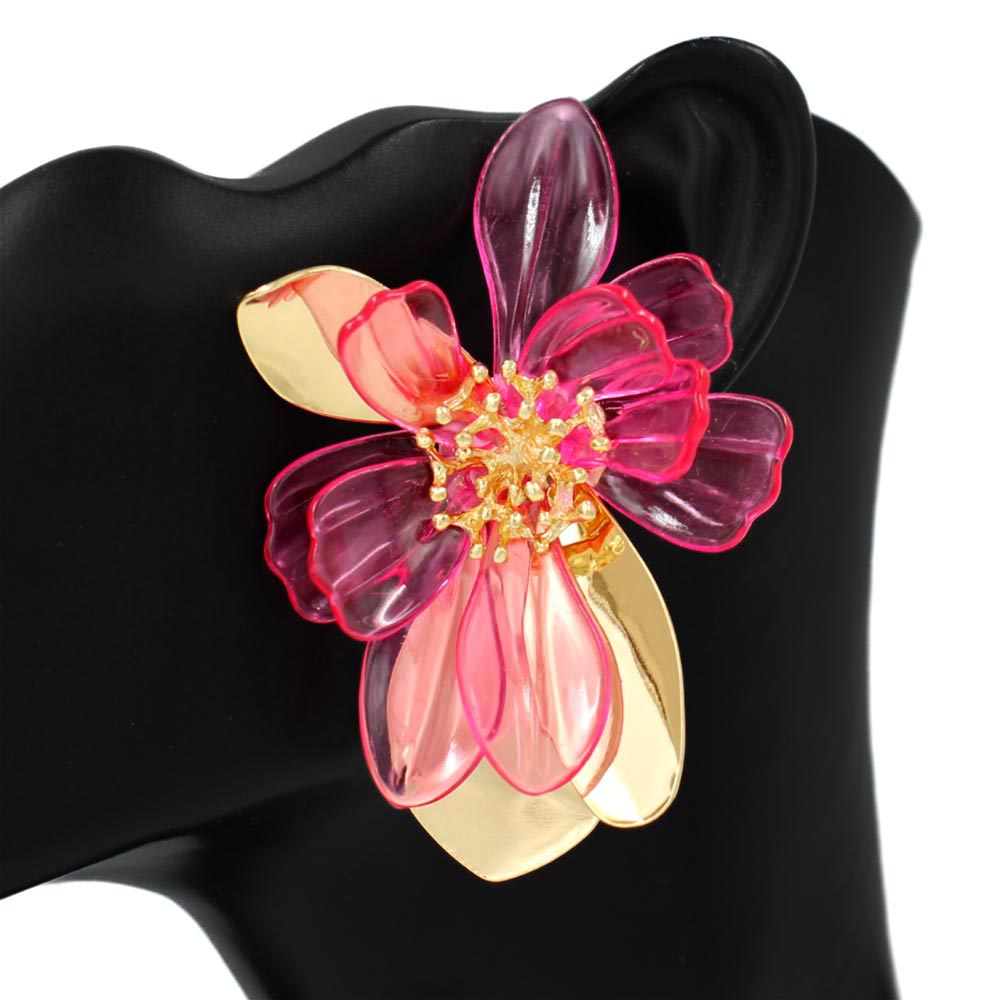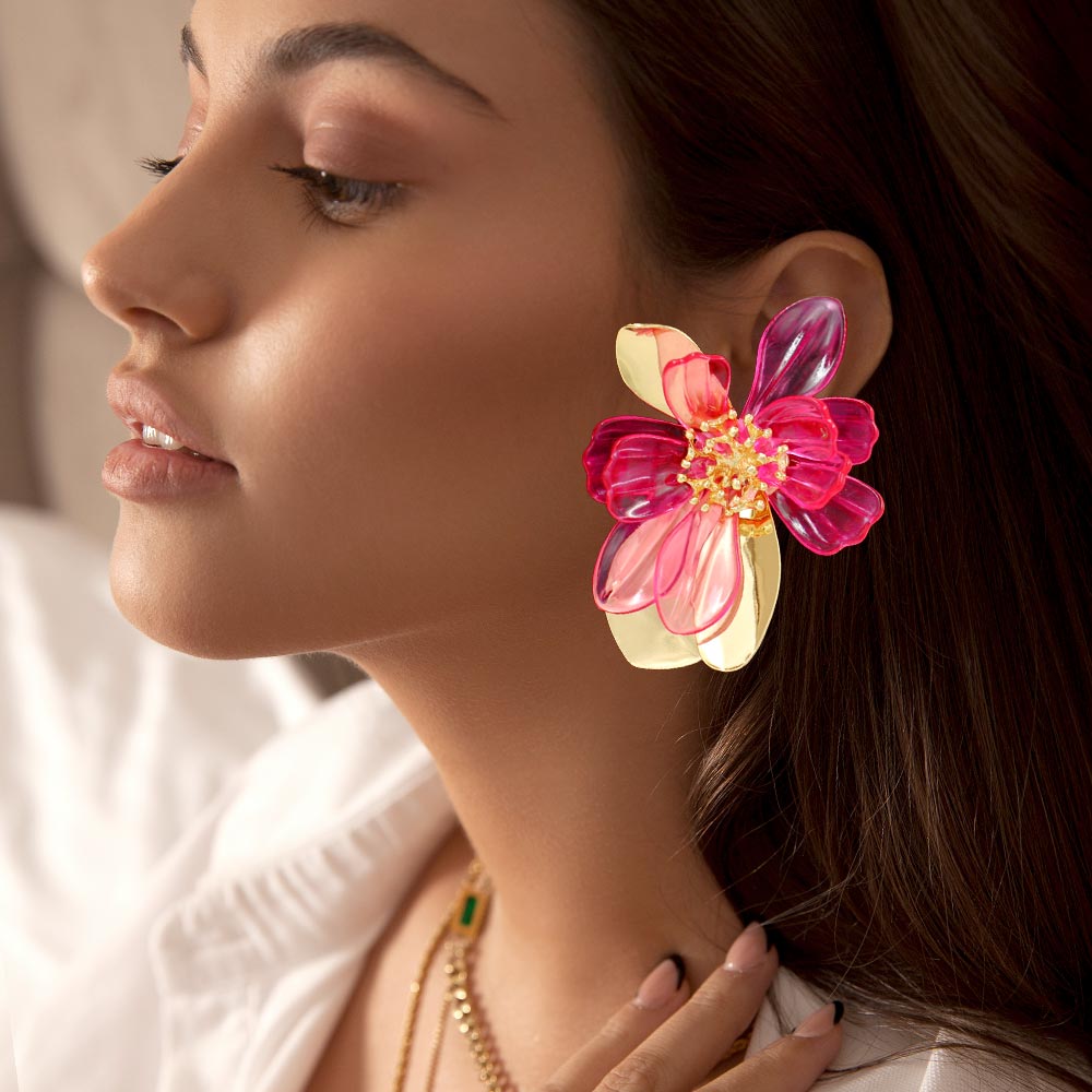 • Bold floral drop earrings designed with layered petal shapes and sculptural details for standout fashion styling. Ideal for boutiques, seasonal displays, special occasions, and statement looks, these earrings add dimension and elegance to both casual and dressy outfits.