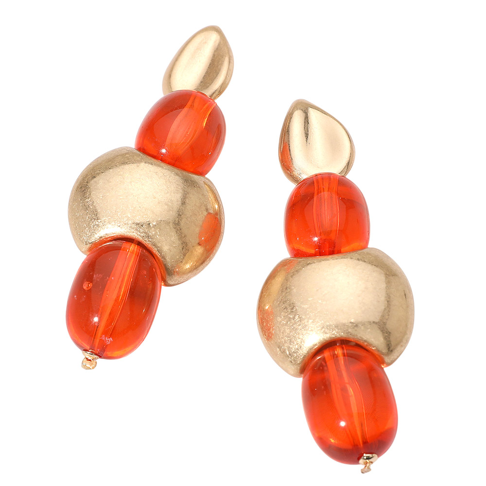 Details • Size : 1.5" X 4" • Post Back • These oval bead layered drop earrings bring modern elegance with their smooth, sculptural design. The combination of glossy and textured elements creates a bold yet refined aesthetic, making them a perfect accessory for adding sophistication to both day and evening looks. • Lead and Nickel Compliant
