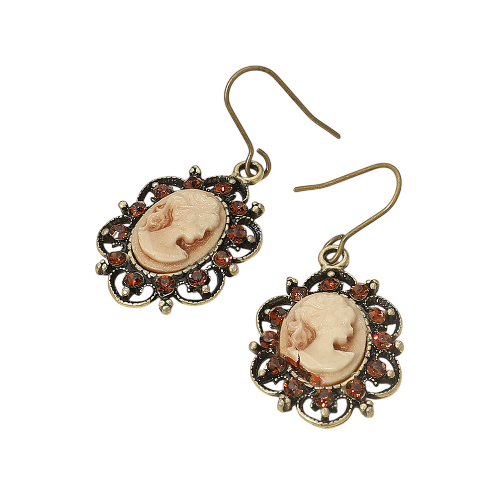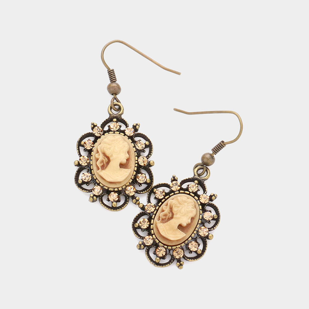 • Add timeless charm with these vintage inspired cameo drop earrings featuring an elegant oval portrait design surrounded by sparkling accents. Lightweight and refined, they are perfect for daily wear or special occasions, offering a sophisticated blend of heritage and modern elegance.