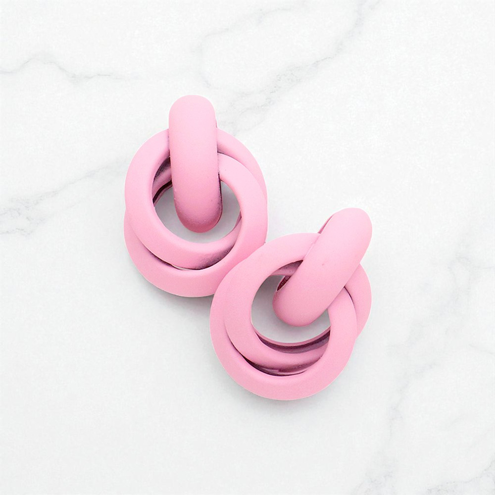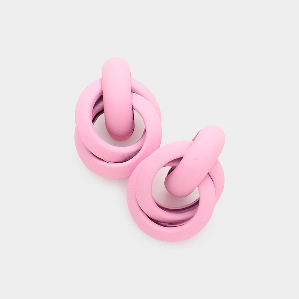 Open Metal Circle Evil Eye Round Bead Link Dangle Earrings