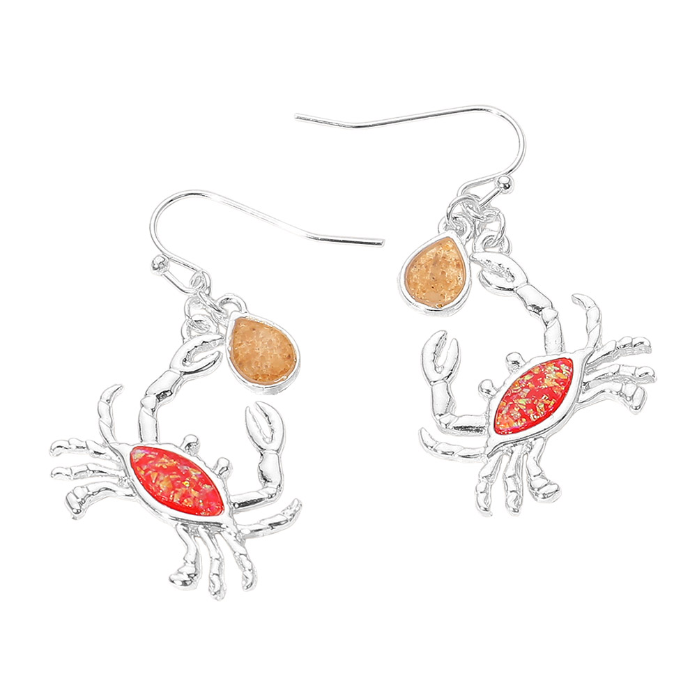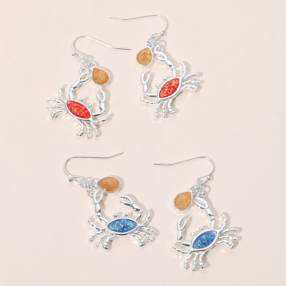 Details • Size : 0.9" X 1.7" • Fish Hook Back • Whimsical crab charm dangle earrings designed with playful seaside details for beach and coastal inspired collections. A fun statement accessory ideal for summer outfits, resort wear, vacations, and ocean themed displays, offering eye catching movement and seasonal appeal for retail assortments. • Lead and Nickel Compliant