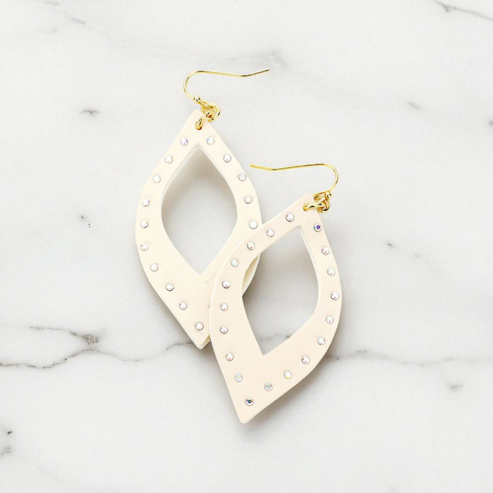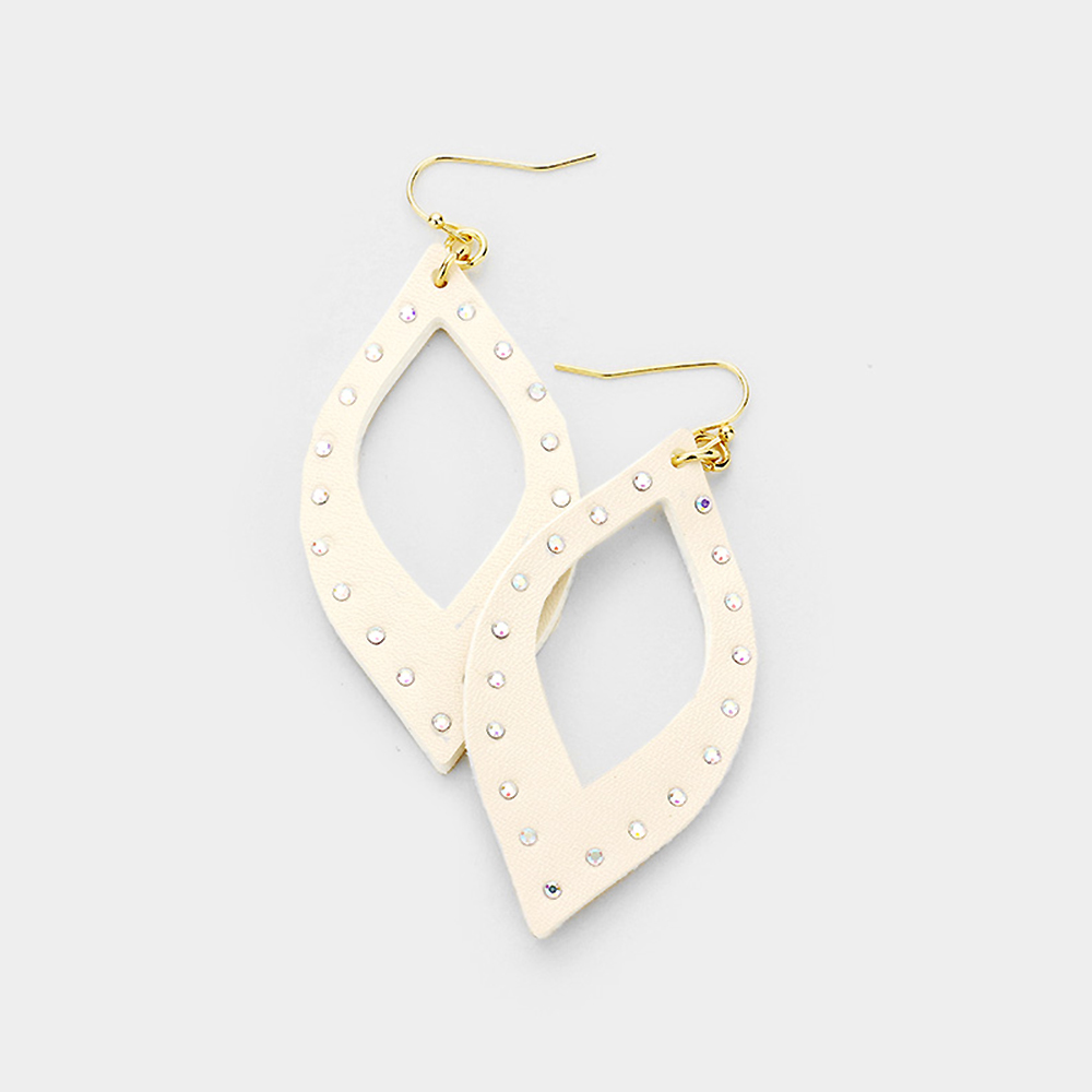 White Gold Dipped Heart CZ Stone Drop Earrings