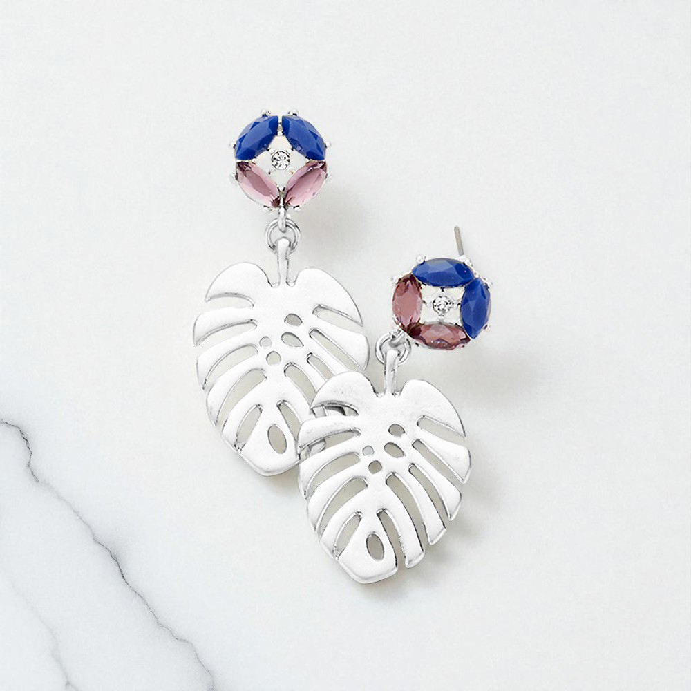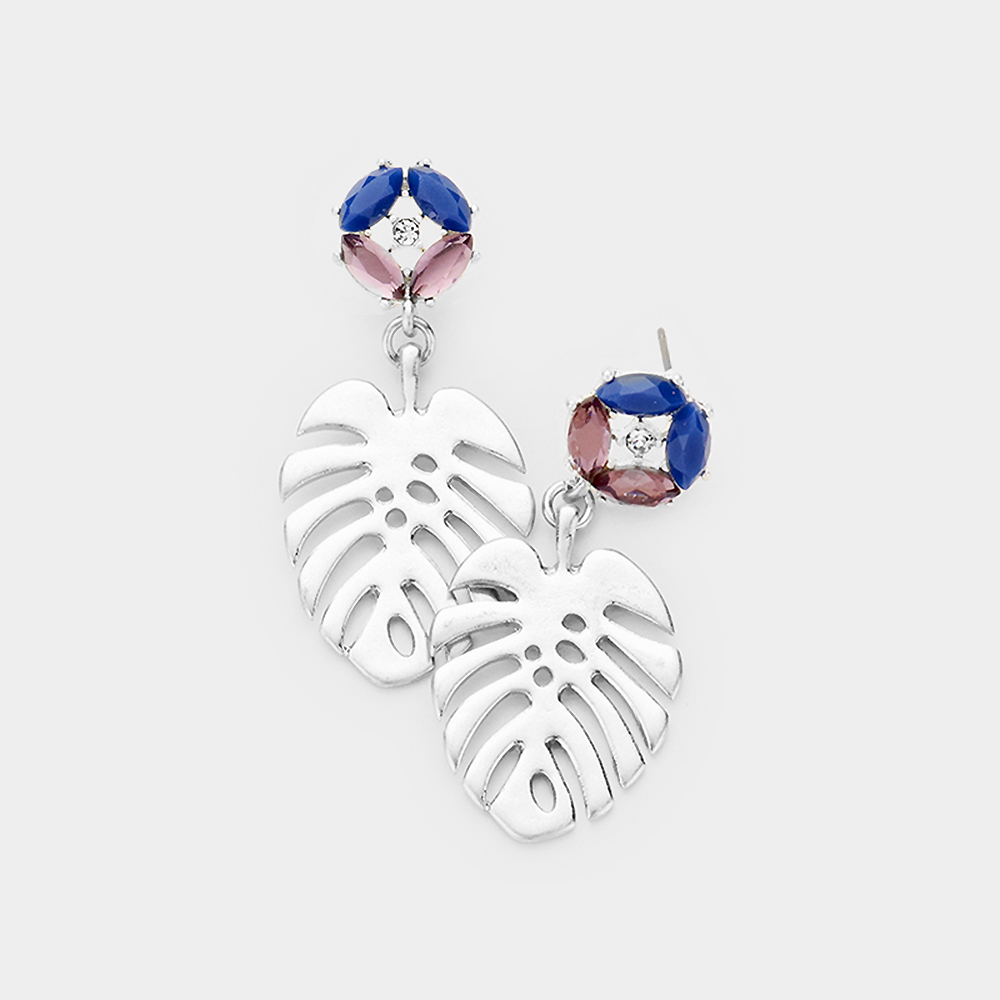 Crystal Marquise Metal Tropical Leaf Dangle Earrings