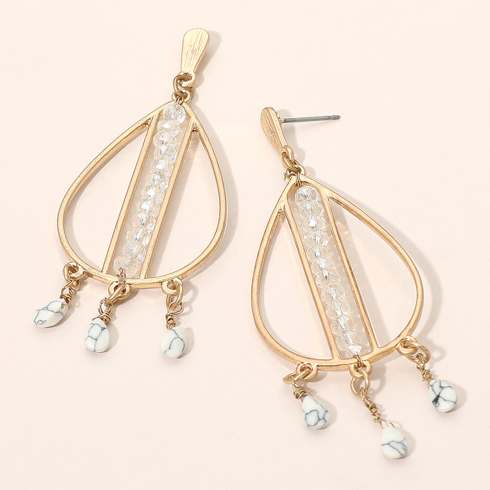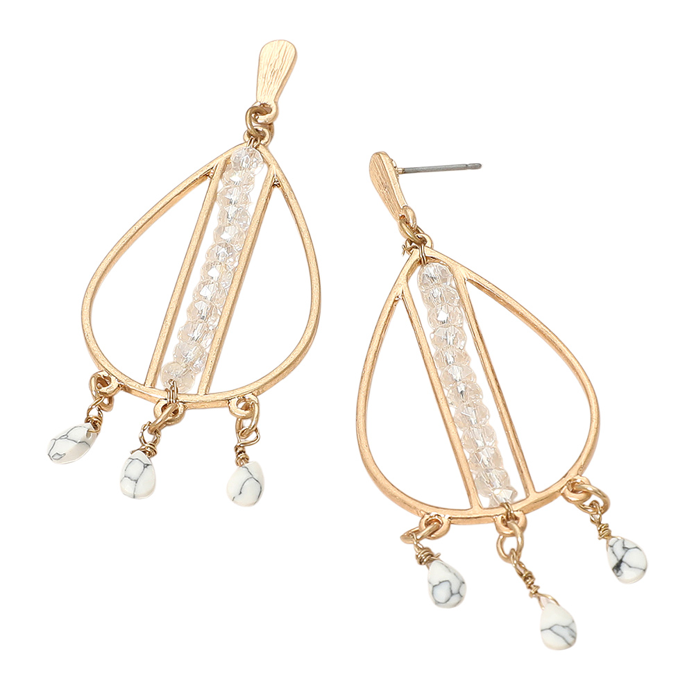 Details • Size : 1.1" X 3" • Post Back • Enhance your look with these teardrop dangle earrings featuring delicate beaded accents and dangling charms. Lightweight and stylish, perfect for casual outings, parties, or special occasions where elegance and modern design come together. • Lead and Nickel Compliant