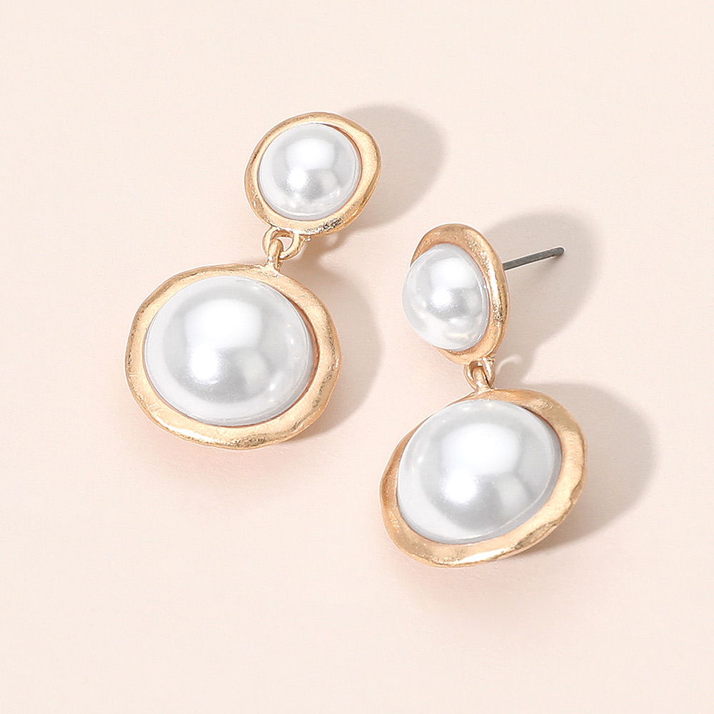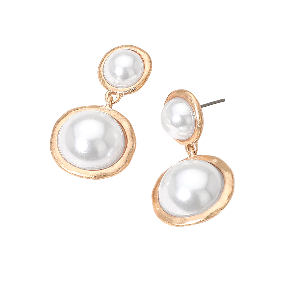 Details • Size : 0.8" X 1.5" • Post Back • Elevate your accessory collection with these Dual Round Pearl Drop Earrings. Featuring two dazzling faceted stones in a modern circular frame, these earrings bring a perfect balance of elegance and sparkle, making them ideal for special occasions or sophisticated daily wear. • Lead and Nickel Compliant