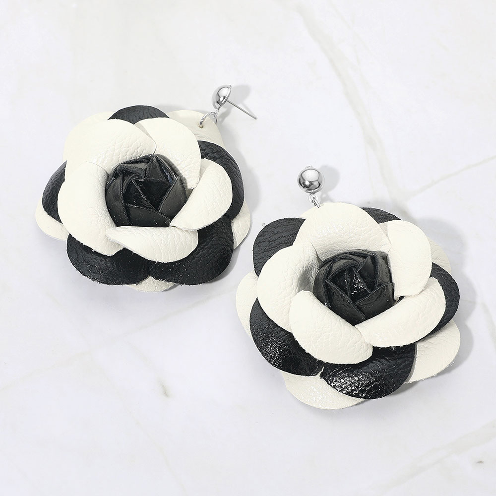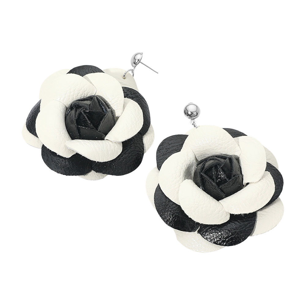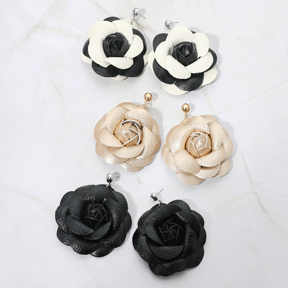 Elegant Faux Leather Rose Bloom Drop Dangle Earrings Elegant Faux Leather Rose Bloom Drop Dangle Earrings Elegant Faux Leather Rose Bloom Drop Dangle Earrings