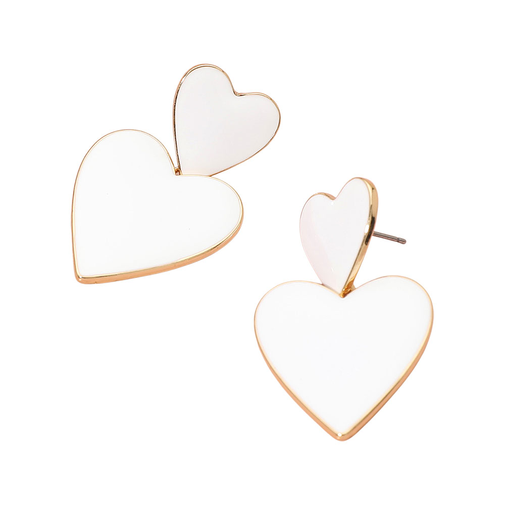 Details • Size : 1" X 1.7" • Post Back • Add a touch of romance to any outfit with these double heart drop earrings. Featuring a charming layered heart design with a polished finish, they bring playful elegance to your everyday or date-night look, making them the perfect statement of love and style. • Lead and Nickel Compliant