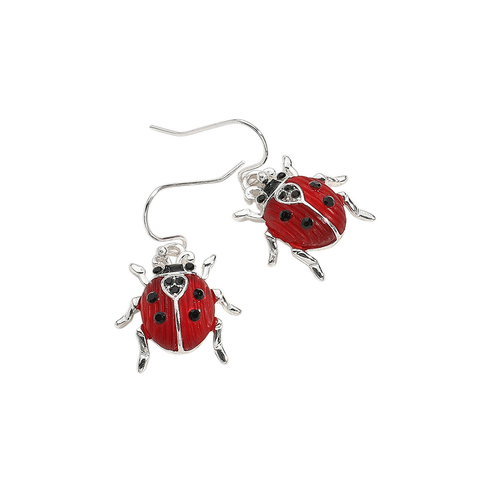 Enamel Lady Bug Dangle Earrings