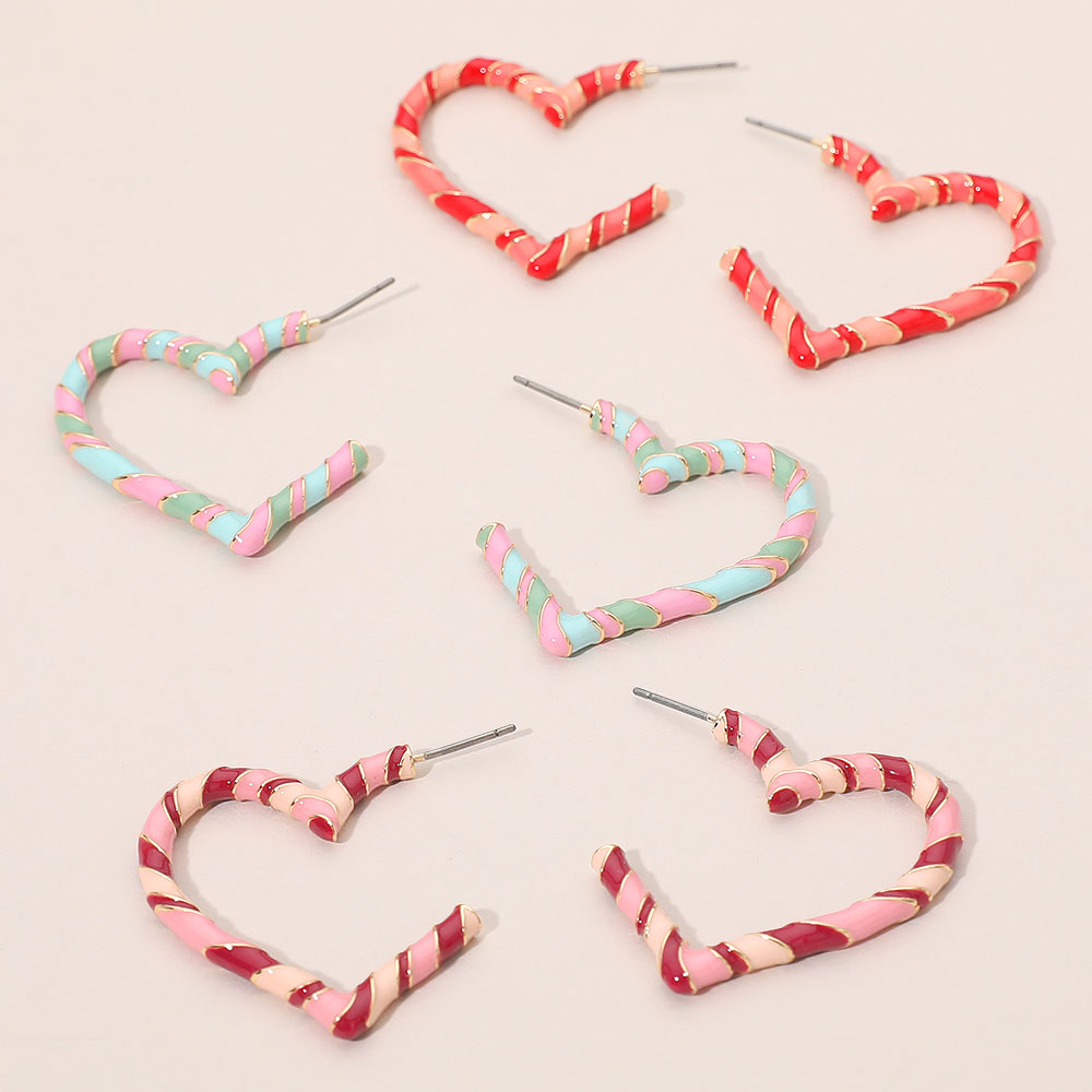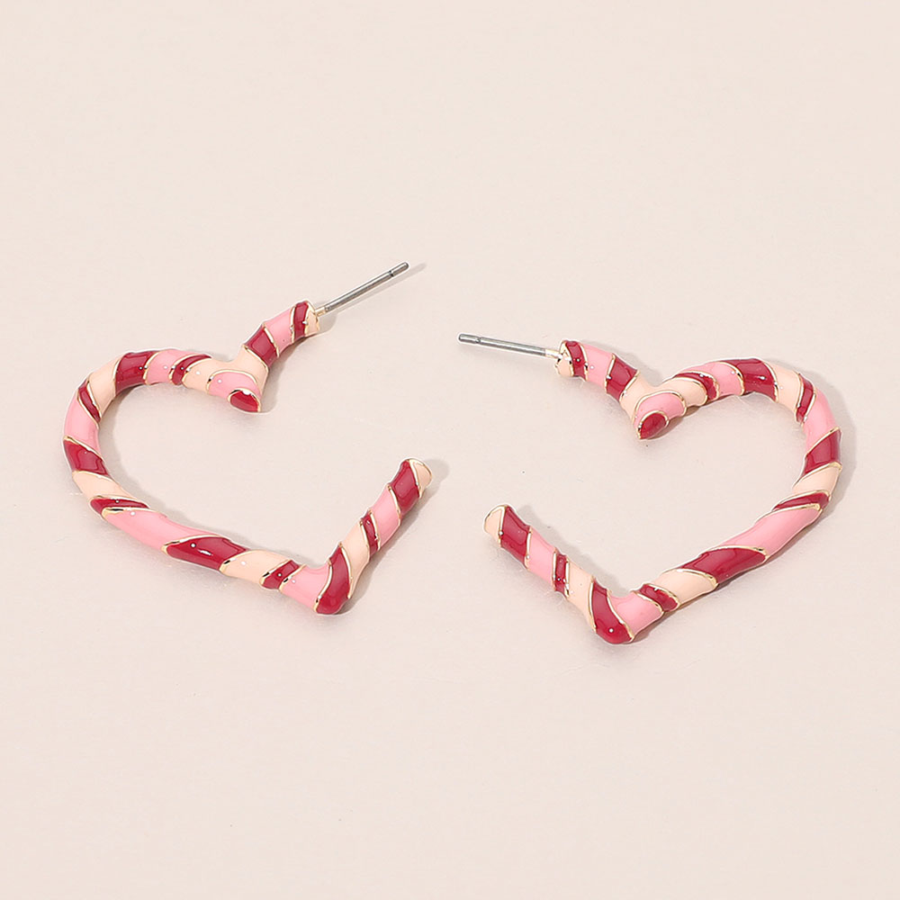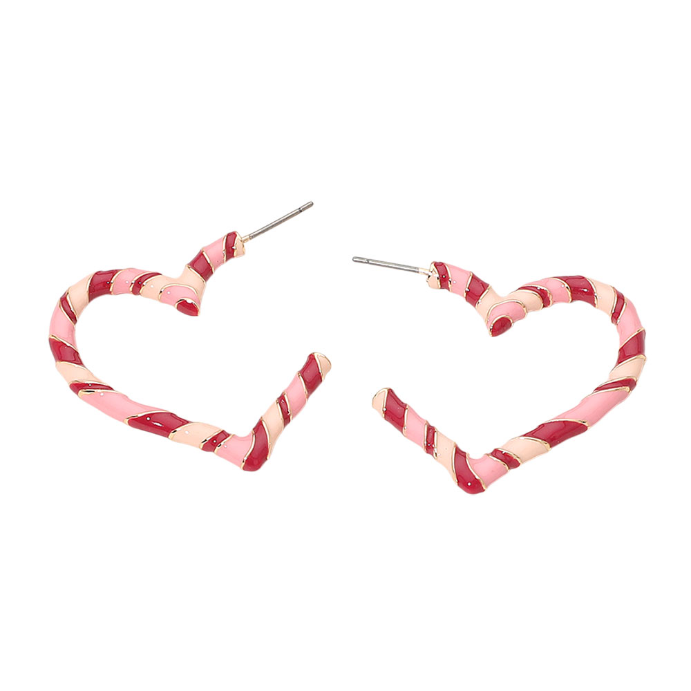 Enamel Twisted Candy Cane Open Heart Hoop Earrings