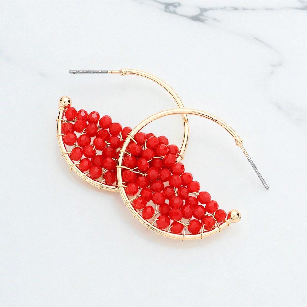 Stone Embellished Open Circle Oval Natural Stone Pendant Necklace