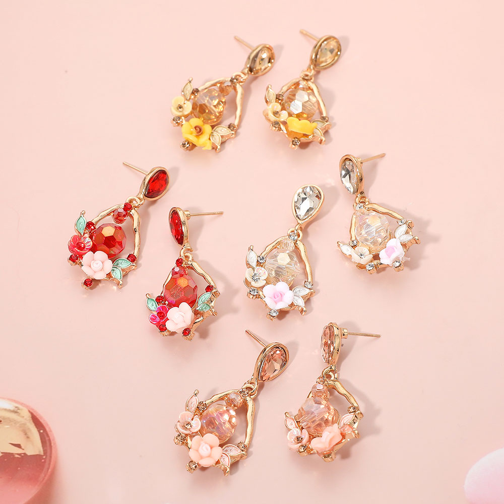 Floral Faceted Gem Embellished Teardrop Dangle Earrings Floral Faceted Gem Embellished Teardrop Dangle Earrings Floral Faceted Gem Embellished Teardrop Dangle Earrings
