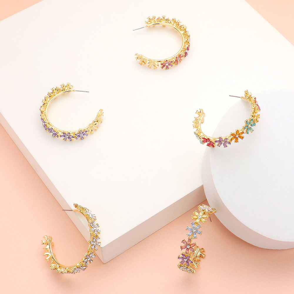CZ Stone Embellished Flower Leaf Accented Hair Comb