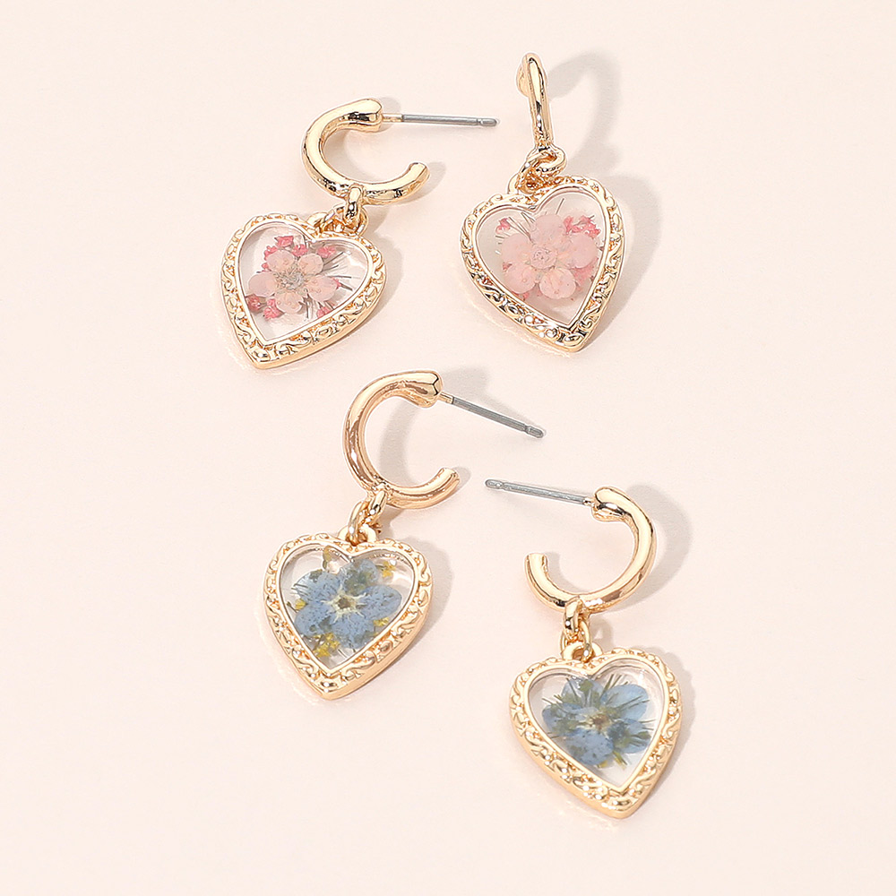 Details • Size : 0.6" X 1.3" • Fish Hook Back • Charming heart-shaped drop earrings designed to showcase a delicate, botanical-inspired centerpiece within a sleek, modern silhouette. Lightweight and easy to style, they add a romantic accent to everyday outfits while transitioning effortlessly into polished looks for evenings or special occasions. • Lead and Nickel Compliant