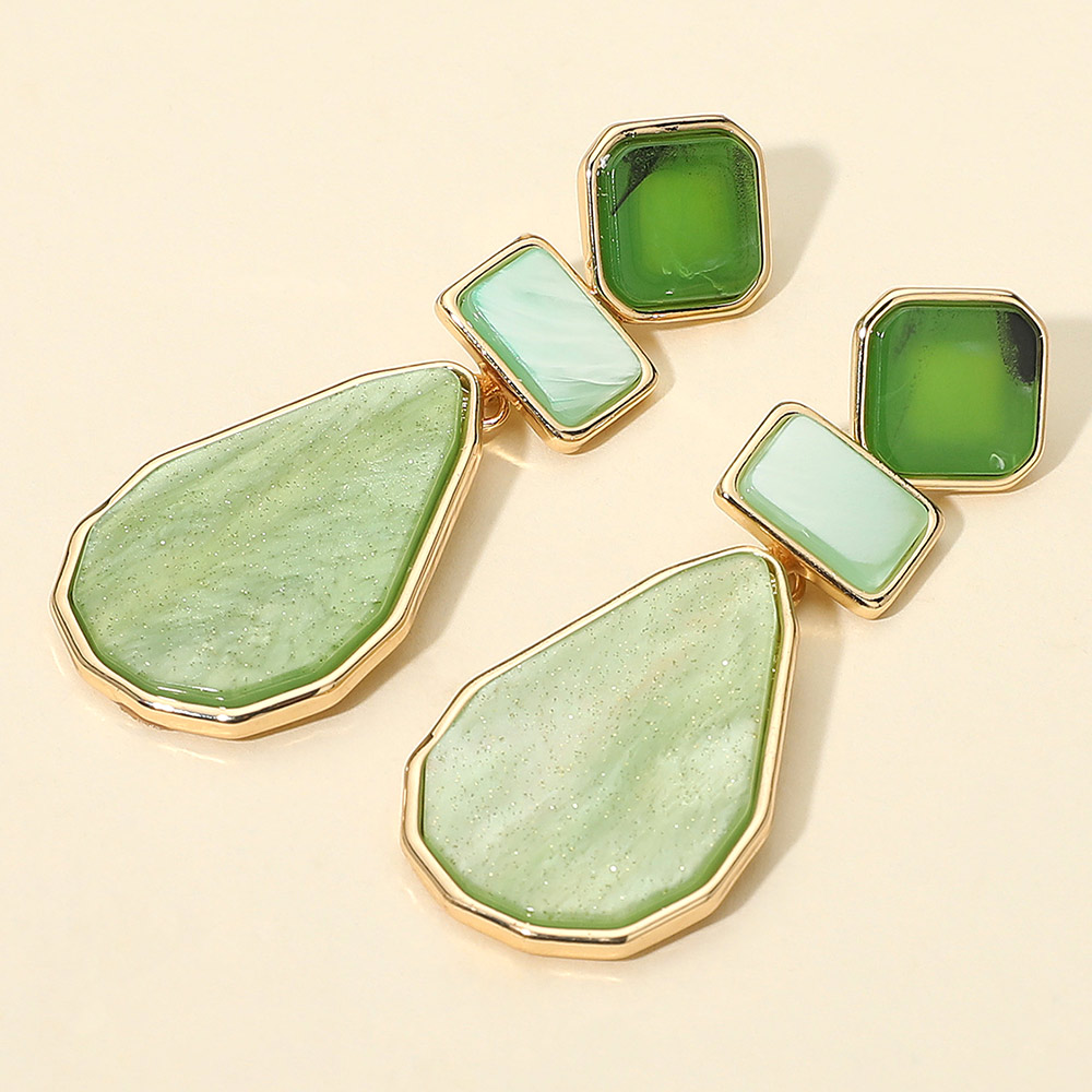 Details • Size : 1.1" X 2.9" • Post Back • Bold geometric drop earrings featuring layered shapes with glossy accents. These statement earrings combine modern artistry with timeless elegance, perfect for parties, evening wear, or elevating everyday outfits. Lightweight and stylish, they add a contemporary touch to any look. • Lead and Nickel Compliant