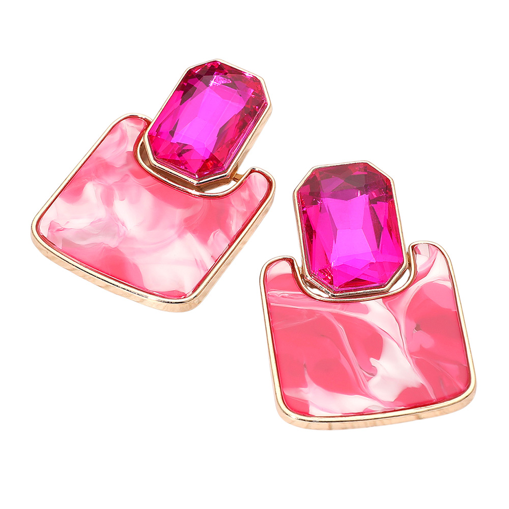 Geometric Stone Accent Printed Resin Plate Drop Earrings